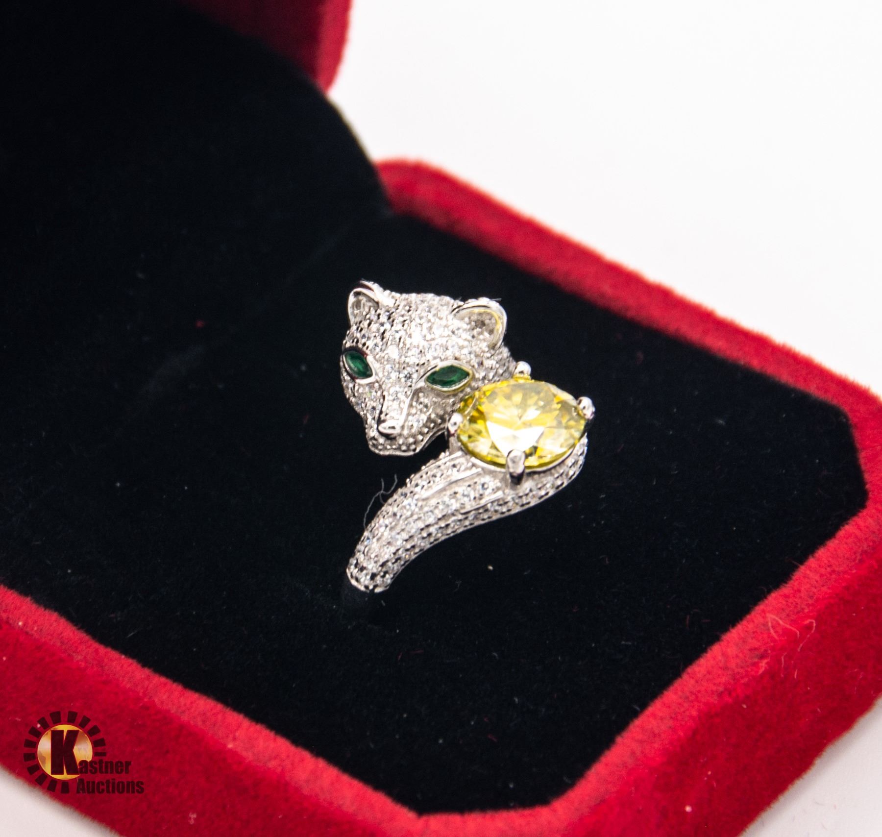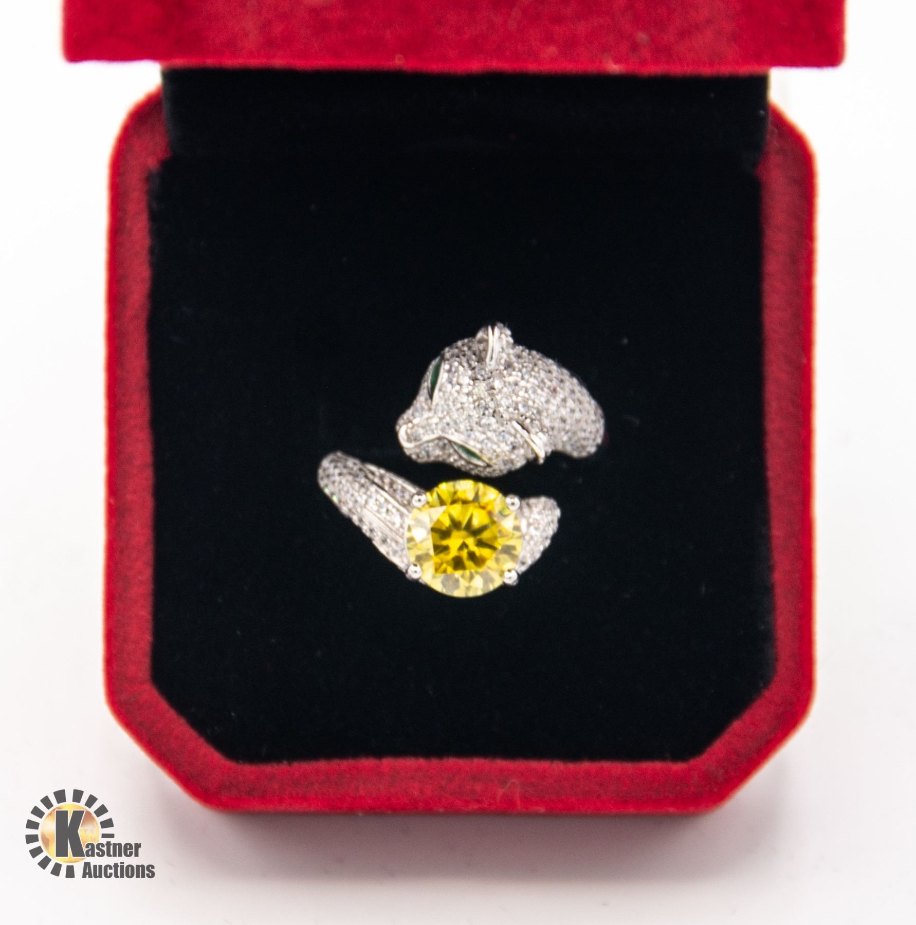 CUT MOISSANITE STONE VVS VIVID YELLOW COLOR SET IN CENTER IN 925 SILVER RING SIZE ADUSTABLE **ALL ITEMS MUST BE REMOVED BY 5PM SATURDAY, SEPTEMBER 21ST 2024. ALL REMAINING ITEMS WILL BE SUBJECT TO A $6.00 PER DAY STORAGE CHARGE. ANY ITEMS REMAINING AFTER MONDAY, OCTOBER 7TH 2024 WILL BE CONSIDERED FORFEITED. NO REFUNDS WILL BE ISSUED FOR FORFEITED ITEMS. TO SCHEDULE A PICK UP APPOINTMENT CLICK HERE