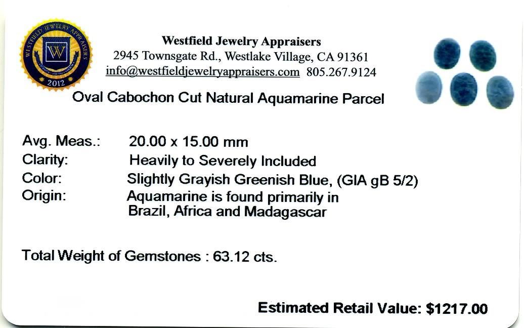 63.12cts Oval Cut Oval Cabochon Cut Natural Aquamarine Parcel. Westfield Appraised at $1,217.00.
