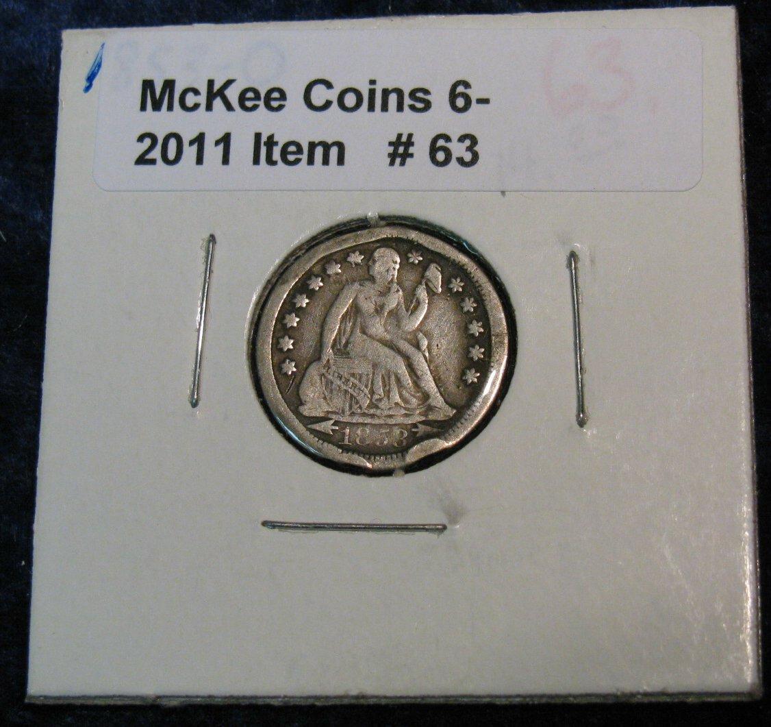 63. 1853 O U.S. Seated Liberty Dime. F-12 details Damaged.