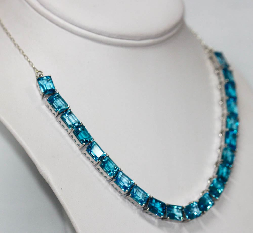 63.50 CTW BLUE TOPAZ EMERALD CUT NECKLACE .925 STERLING **|**|** 63.50 CTW BLUE TOPAZ EMERALD CUT NECKLACE .925 STERLING SILVER
