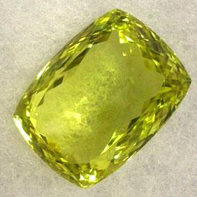CUSHION CUT LEMON CITRINE. IT WEIGHTS 63 CTS AND MEASURES 27x20 MM