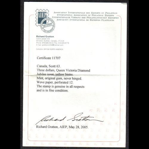 #63 MINT NH JUBILEE AIEP CERTFICATION C$4000,00