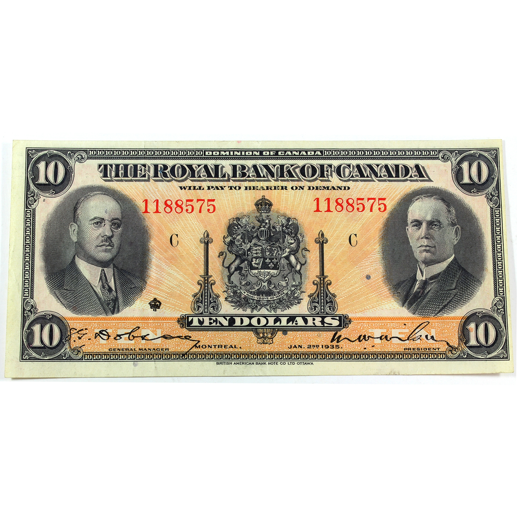 630-18-04a 1935 $10 Royal Bank of Canada VF-EF Dobson-Wilson SN: 1188575 Check Letter C
