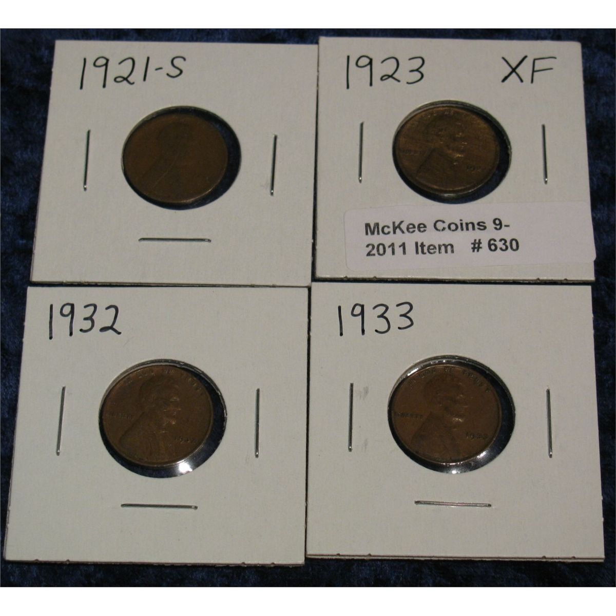 630. 1921S Scratched, 23P EF, 32P F, & 33P F Cents.