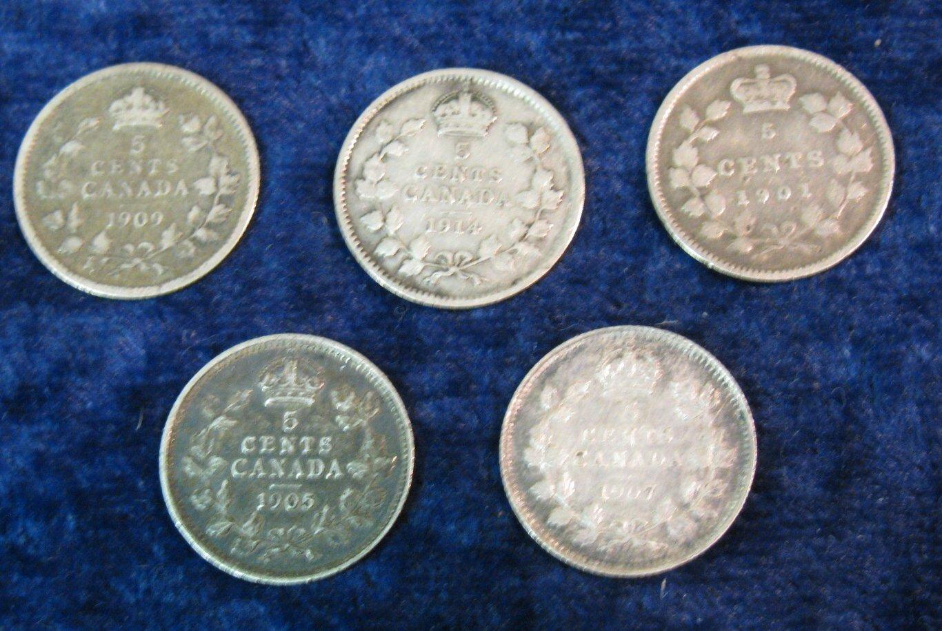 636. 1901, 05, 07, 09, & 14 Canada Five Cent Silvers.