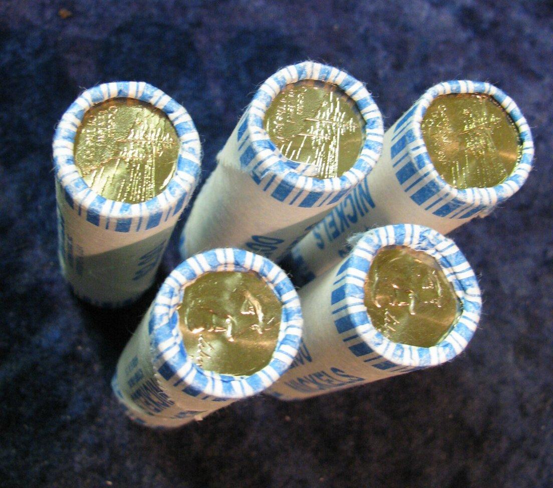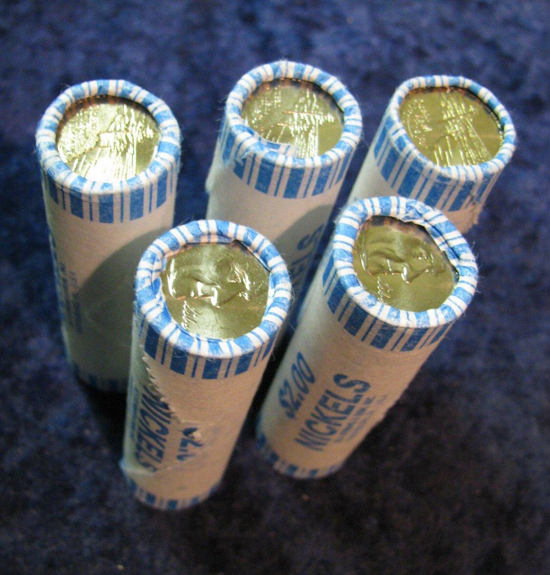 636. (5) 2005 D "Ocean View" Original Gem BU Bank wrapped rolls of Jefferson Nickels. ($10 face value)