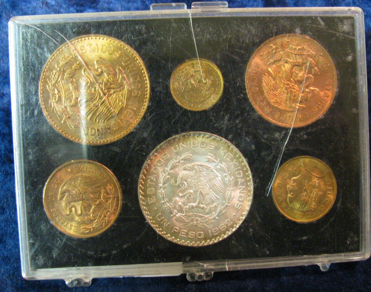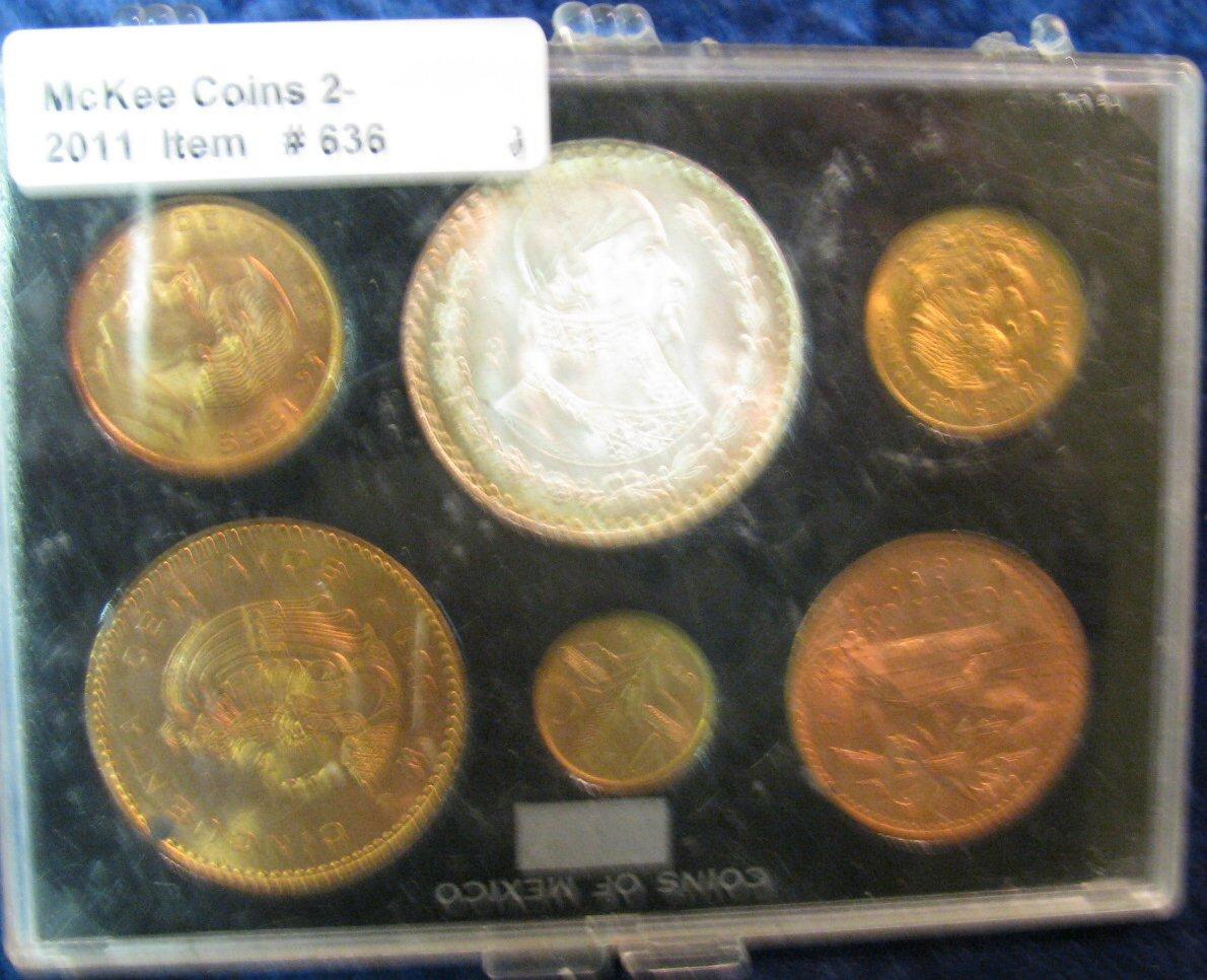 636. Gem BU 1959-63 Mexico Type Set. Includes Silver Peso. (6 pcs.).