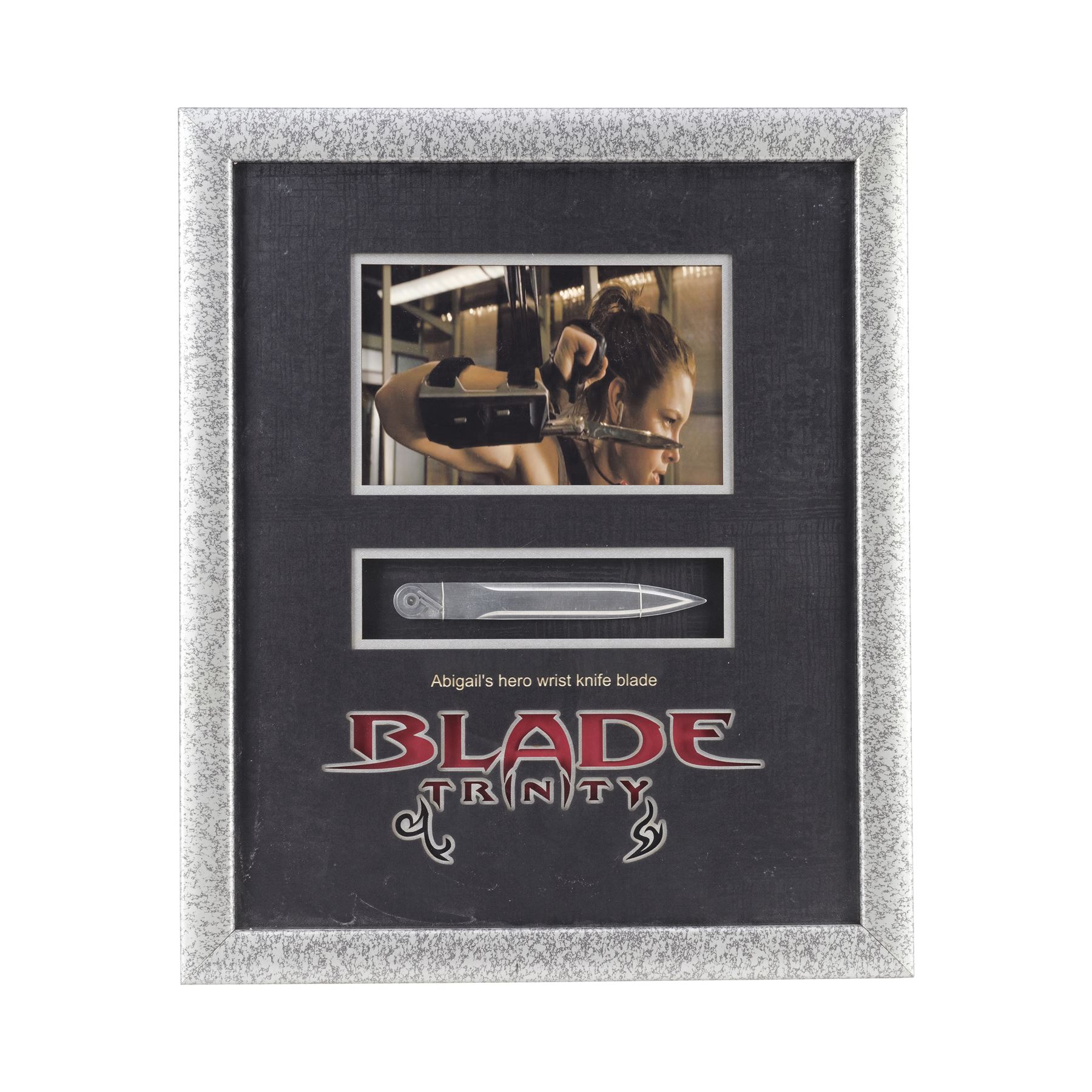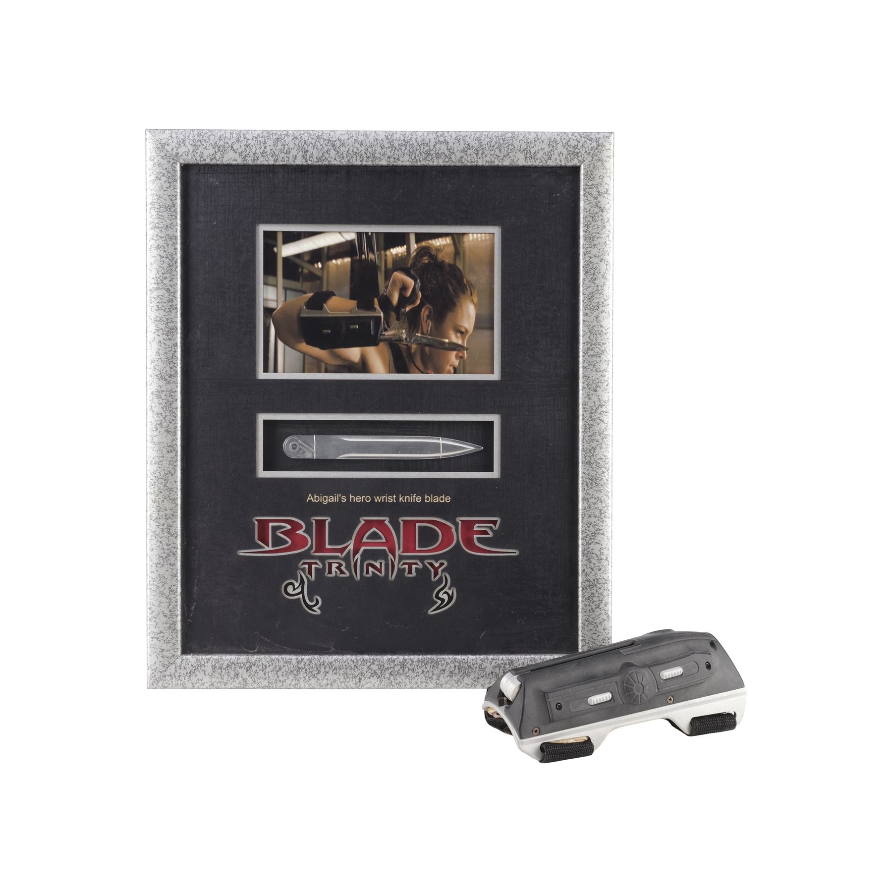 BLADE: TRINITY (2004) - Abigail Whistler's (Jessica Biel) Gauntlet and Blade - Abigail Whistler's (Jessica Biel) Gauntlet and Blade from David S. Goyer's Blade: Trinity. Abigail used her bladed gauntlet when she brawled with a band of vampires at a deserted train station in the beginning of the film.