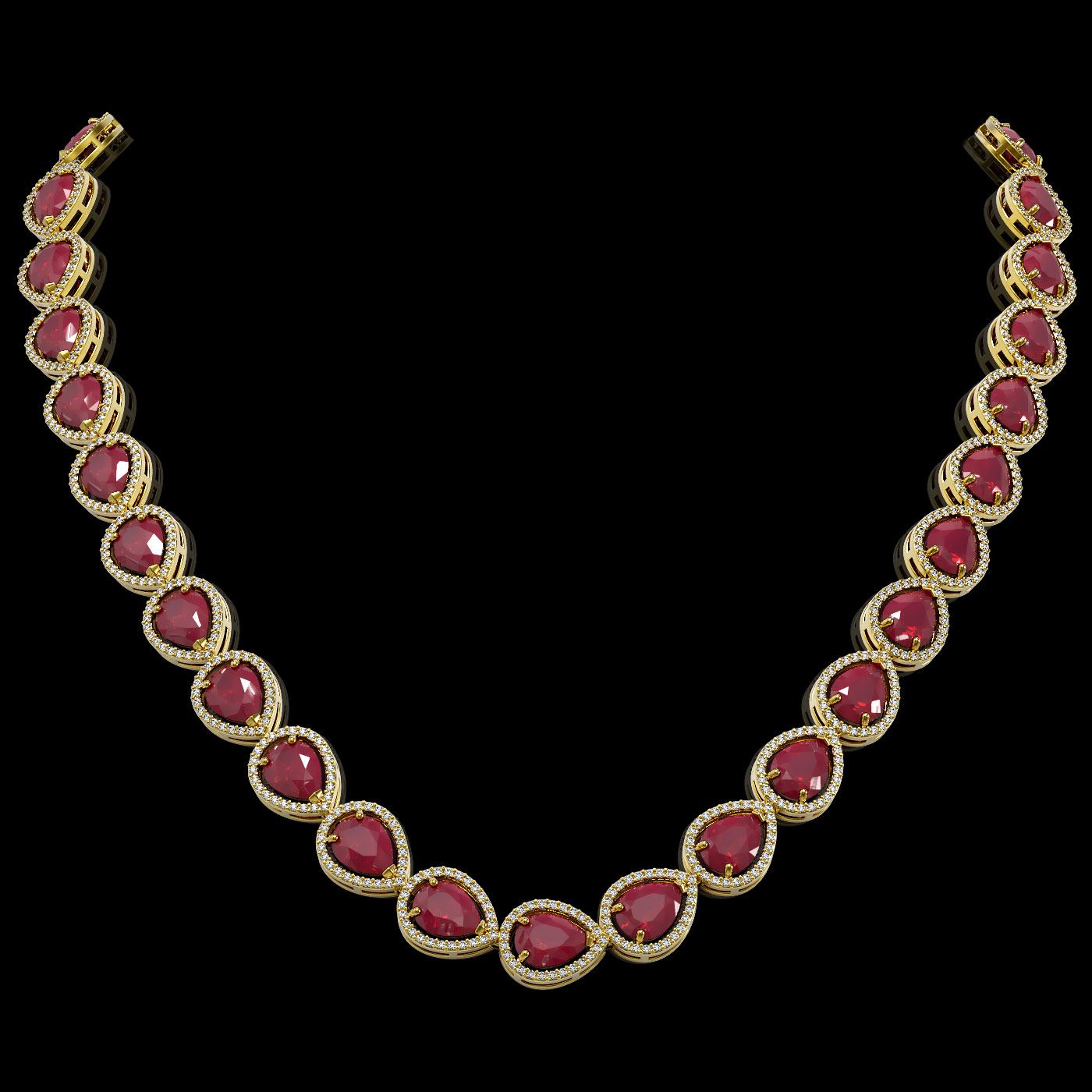 REF-854G5W - SKU: 41191 ---- 64.01 ctw Ruby & Diamond Micro Pave Halo Necklace 10k Yellow Gold