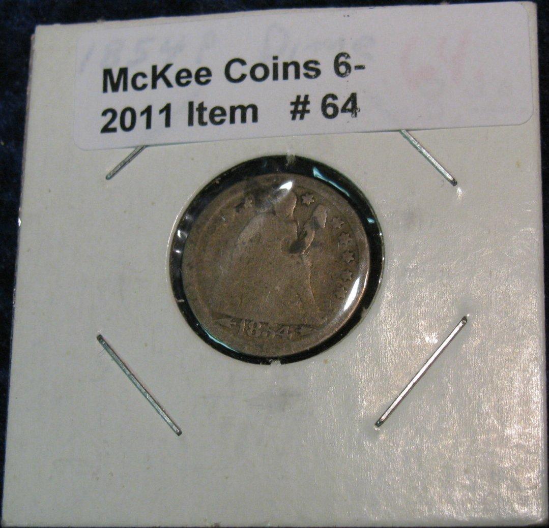 64. 1854 Arrows Seated Liberty Dime. G-4.