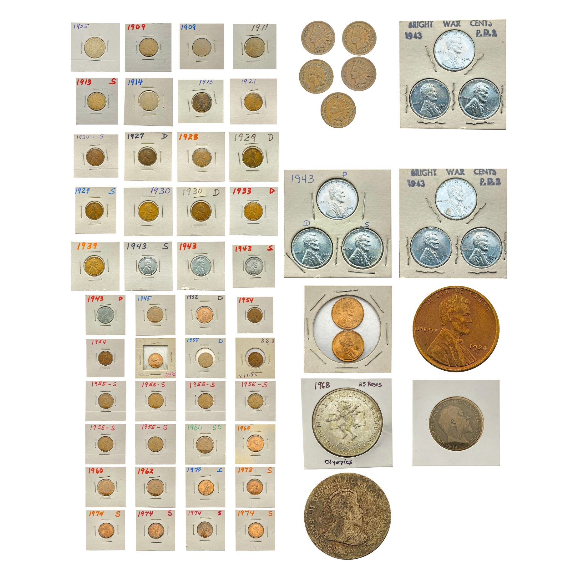 [64]1901-1974 Assorted U.S. 1C & Foreign Silver