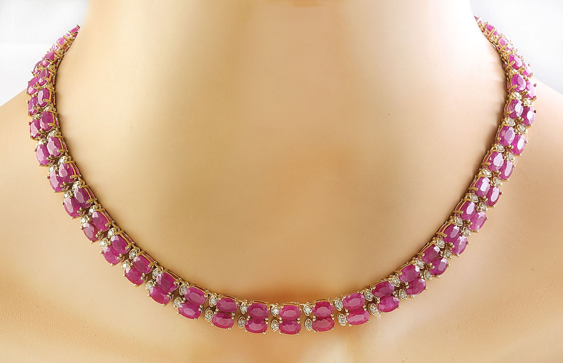 64.30 CTW Ruby 18K Yellow Gold Diamond Necklace