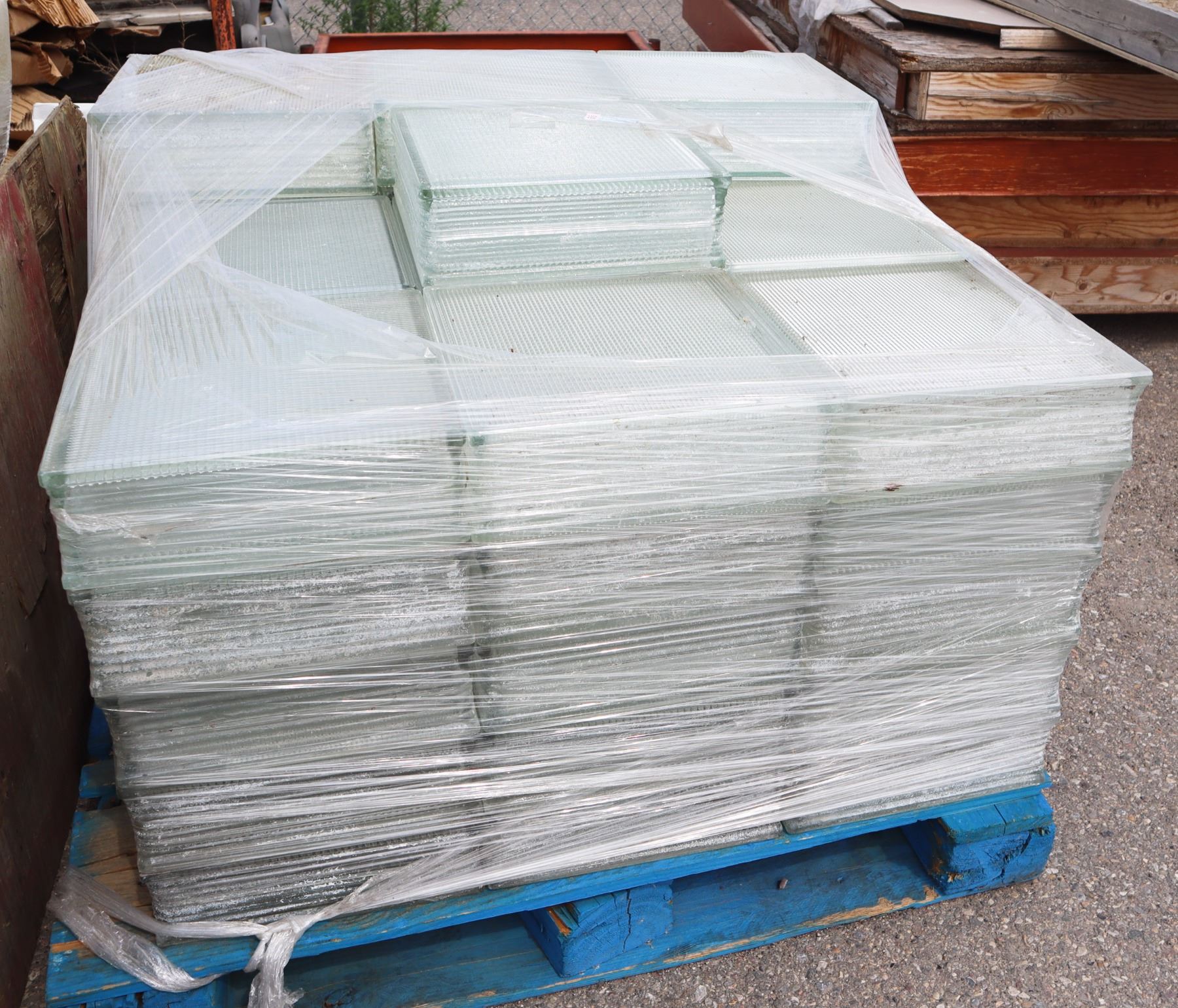 11.5” x 11.5” x 3.5”. FINE GRID PATTERN. SOME HAVE SOME CHIPS MOST ARE GOOD