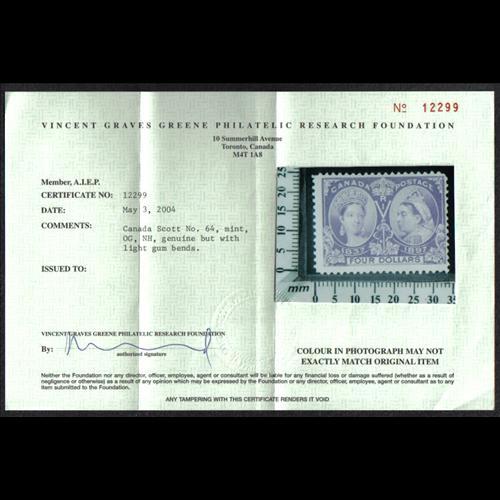 #64 MINT FINE NH JUBILEE VGG CERTIFICATION C$2400,00