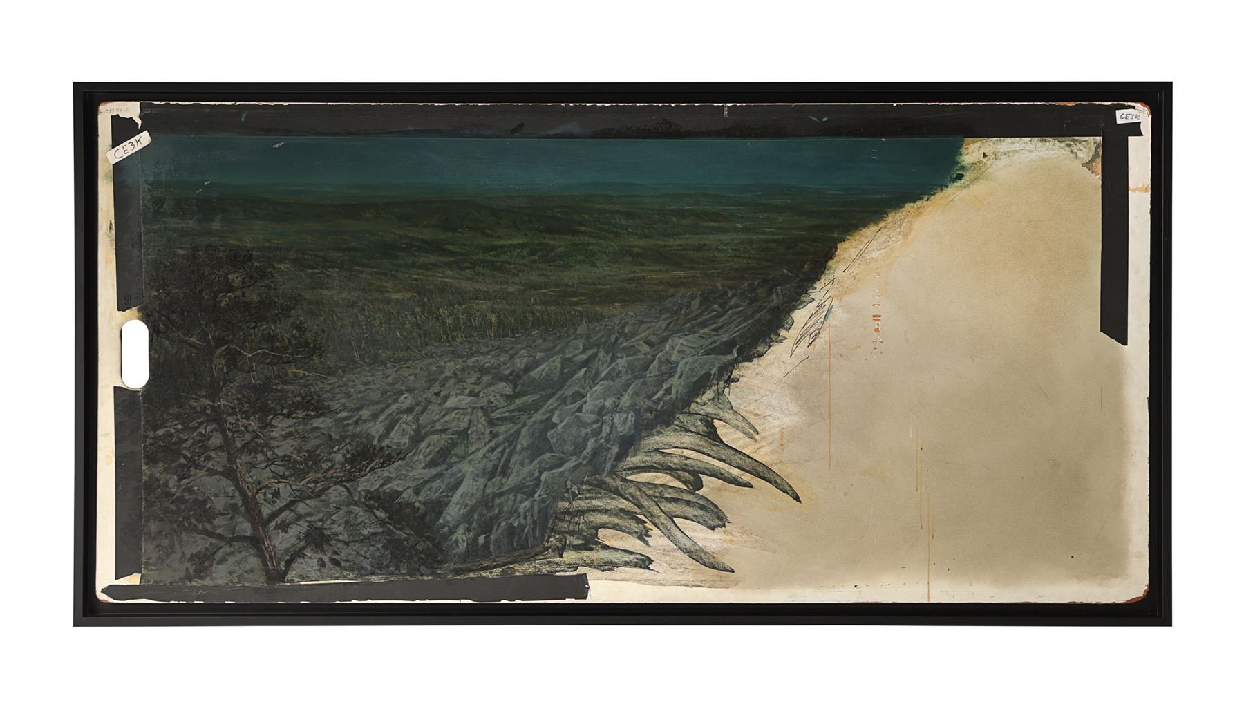 Over the next three decades, Yuricich contributed matte paintings to many of the most renowned movies ever made, among them Mutiny on the Bounty, The Greatest Story Ever Told, The Poseidon Adventure, Westworld, The Towering Inferno, Young Frankenstein, Ghostbusters, Die Hard, Dances with Wolves, and Field of Dreams. Recognition for effects artists was always slow-in-coming from film studios and it was not until 1976 that his contributions to cinema were formally acknowledged. The Academy of Motion Picture Arts and Sciences awarded Yuricich (along with L.B. Abbott and Glen Robinson) a Special Achievement Award for his work on Logan's Run. The following year, Yuricich - along with his brother Richard and a team of other effects visionaries including Douglas Trumbull - received a competitive nomination for Best Visual Effects for Steven Spielberg's Close Encounters of the Third Kind. Yuricich also emerged in this period as a committed teacher and advocate for the field of matte painting at large, which was soon to be threatened by the advent of computer-generated effects. As the chief matte artist for companies including Entertainment Effects Group (EEG), its follow-up Boss Film Corporation, and Video Image throughout the 1980s and 90s, he took on a series of studio apprentices who learned to emulate both his notorious early-to-rise work ethic and impeccable artistic form. Several of these apprentices went on to create film art nearly as acclaimed as his own, with a raft of awards and blockbuster hits earned by work inspired by their mentor.In 2006, Miami University bequeathed Yuricich with its Distinguished Achievement Award for his accomplishments as an educator and artist in the visual effects realm. He died six years later leaving a legacy that included effects contributions to over 70 film and television titles. And in 2017, he was posthumously inducted into the Visual Effects Society's Hall of Fame, where his legacy as both artist and advocate continues to be preserved into perpetuity. Propstore is pleased to present these never-before-offered mattes from some of Yuricich's most beloved films. From Logan's Run to Blade Runner to Ghostbusters to Star Trek: The Motion Picture, this selection of extraordinary hand-painted artworks offers veteran collectors and casual movie fans alike unique access to one of cinema's great masters. The matte paintings offered speak to the rich history of cinema and the grand tradition of innovation that was necessary to bring so many of the world's favorite stories to life. The physical matte shot is now a lost art that will never return again; all matte shots for modern filmmaking are accomplished digitally. Matte paintings were always simply a step in the process on the way to capturing a VFX shot in celluloid, rather than an end-product in themselves, but these hand-painted original artworks existed as evidence of how the shot was achieved. That is no longer the case-the matte shots of today, like nearly all visual effects shots, do not exist in any physical form. It is most likely that no new matte paintings will ever be created again, and the paintings from yesteryear that still exist are exceedingly rare. Indeed, these offered works are among the scarce few original paintings still known to exist from Yuricich's career. The paintings are some of the last of their kind and in the years ahead will be the sole link to this great lost art form. Aside from their aesthetic qualities and inherent beauty, seeing them in person offers a rare peek behind the magician's curtain and insight into a once-prevalent art form that is now extinct and will not return again. These paintings are a moment in time -- a tribute not only to the eternal magnificence of this captivating form, but to the Silver Screen on a global scale.