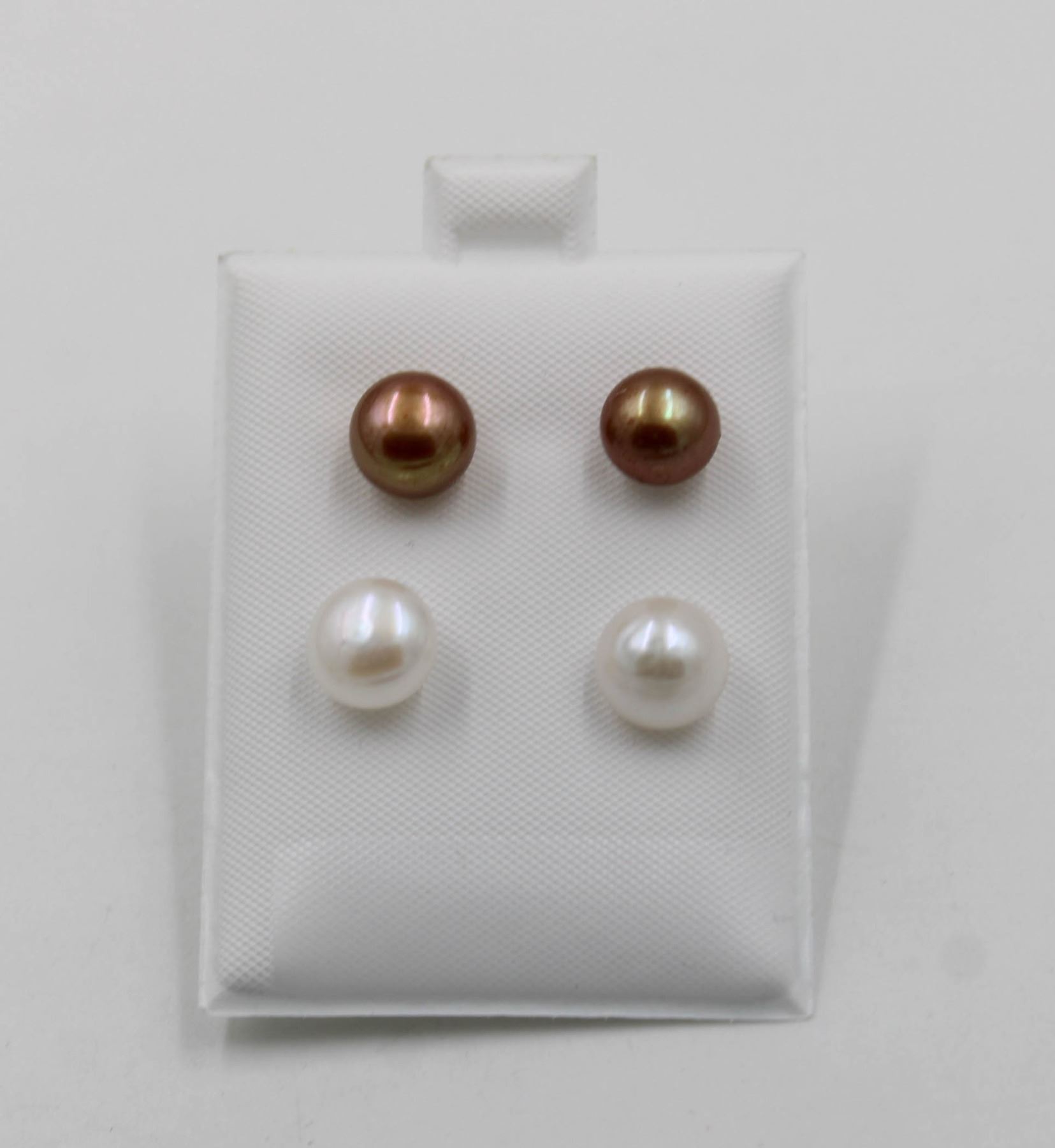.925 STERLING SILVER /7.5-8MM/BROWN & WHITE