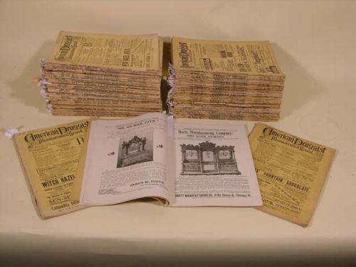 1895-1903 64 druggist pharmaceutical record journals. Fabulous graphics of fountains/showcases/soda fountains/drug store interiors/candy jars/trade stimulators. Great reference books.