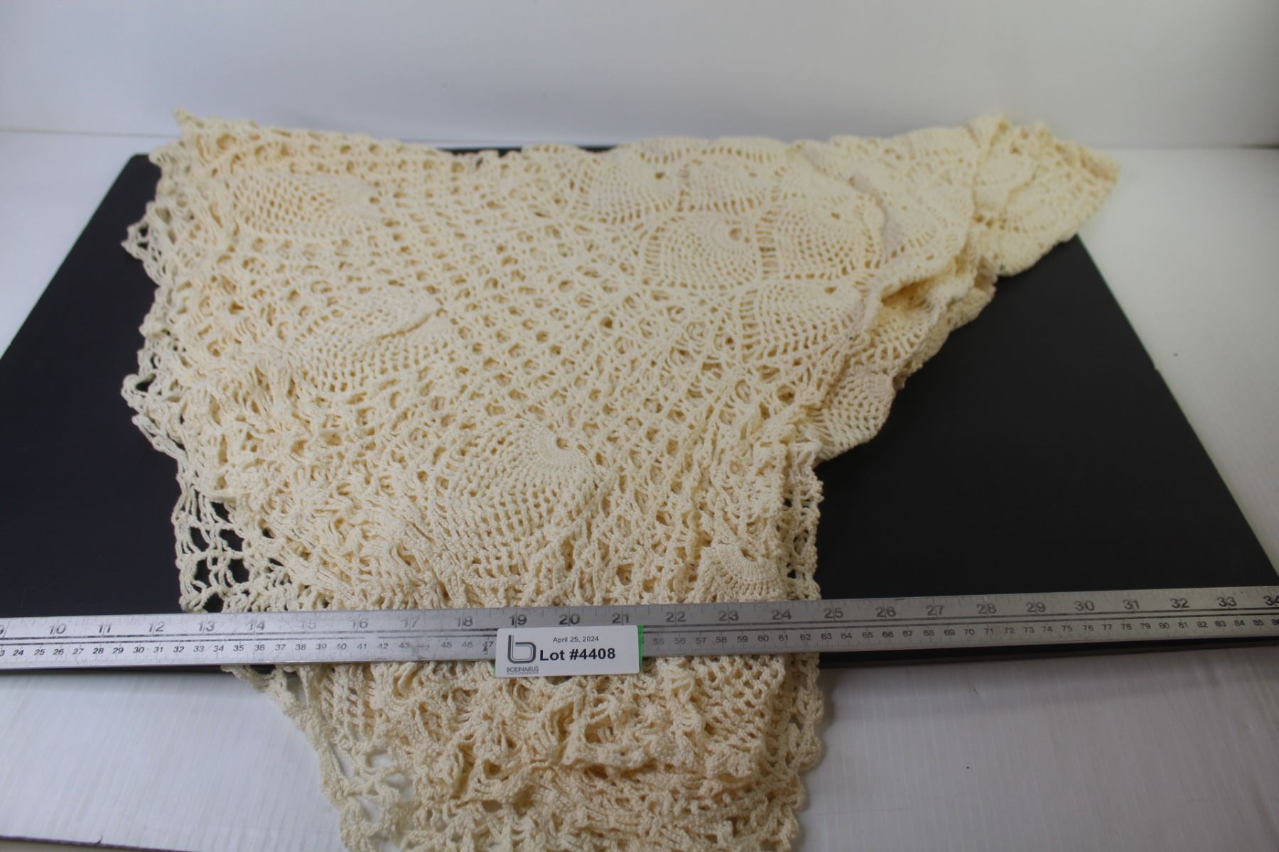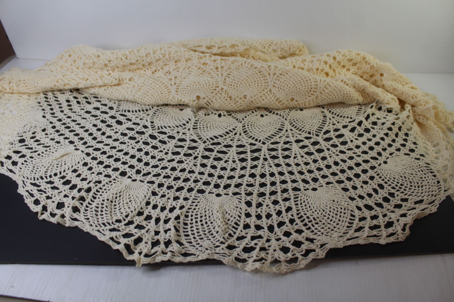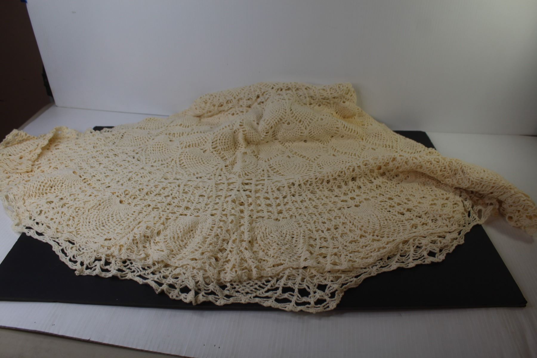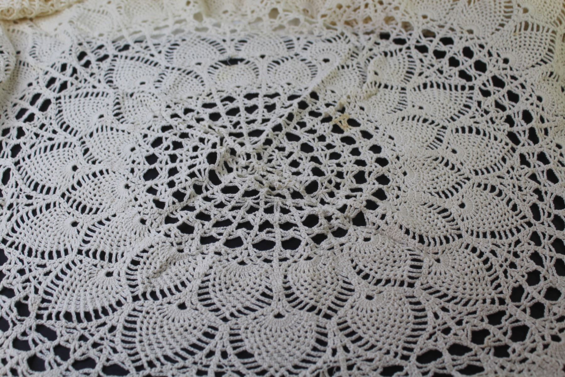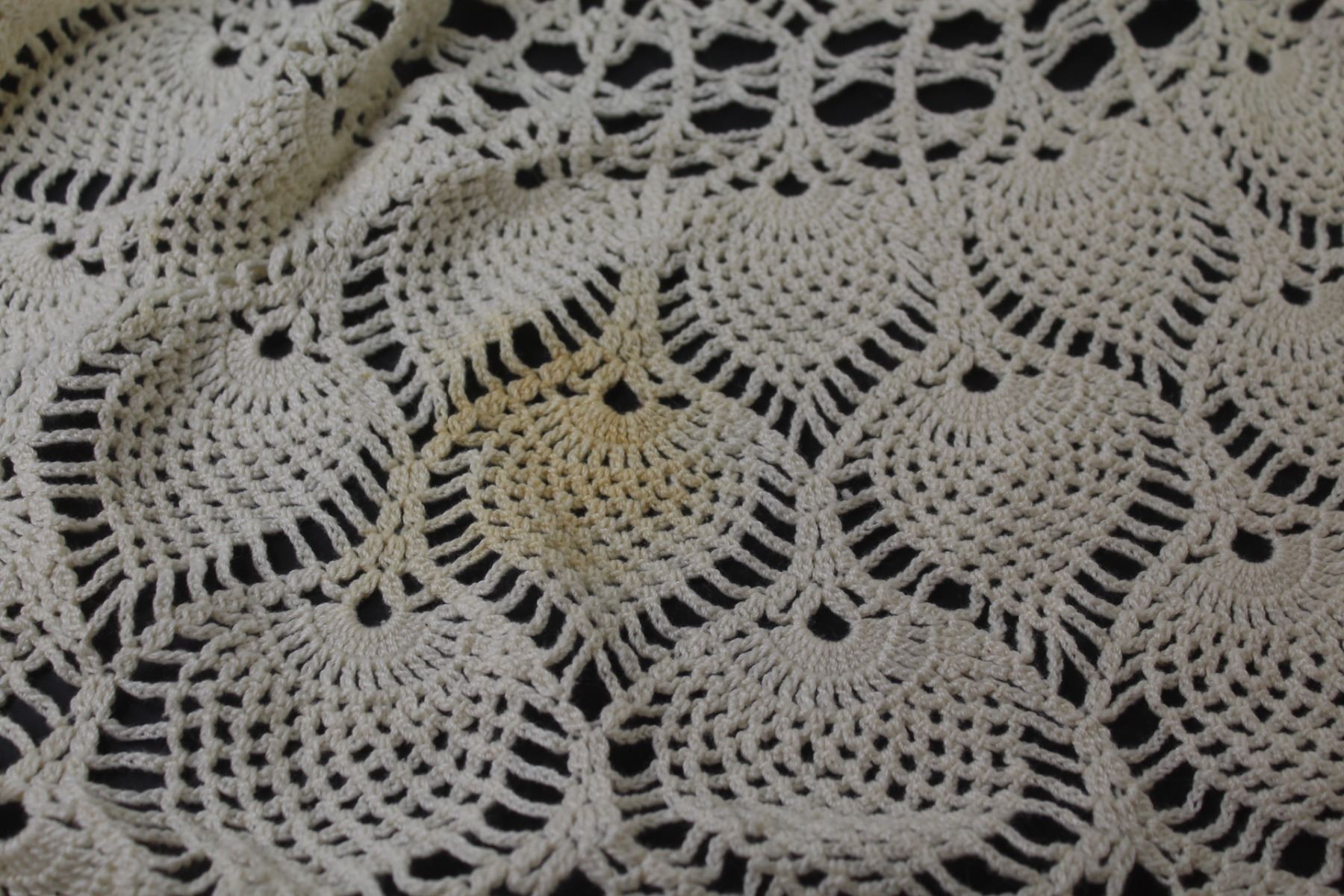 64" Round Crocheted Tablecloth (stained)