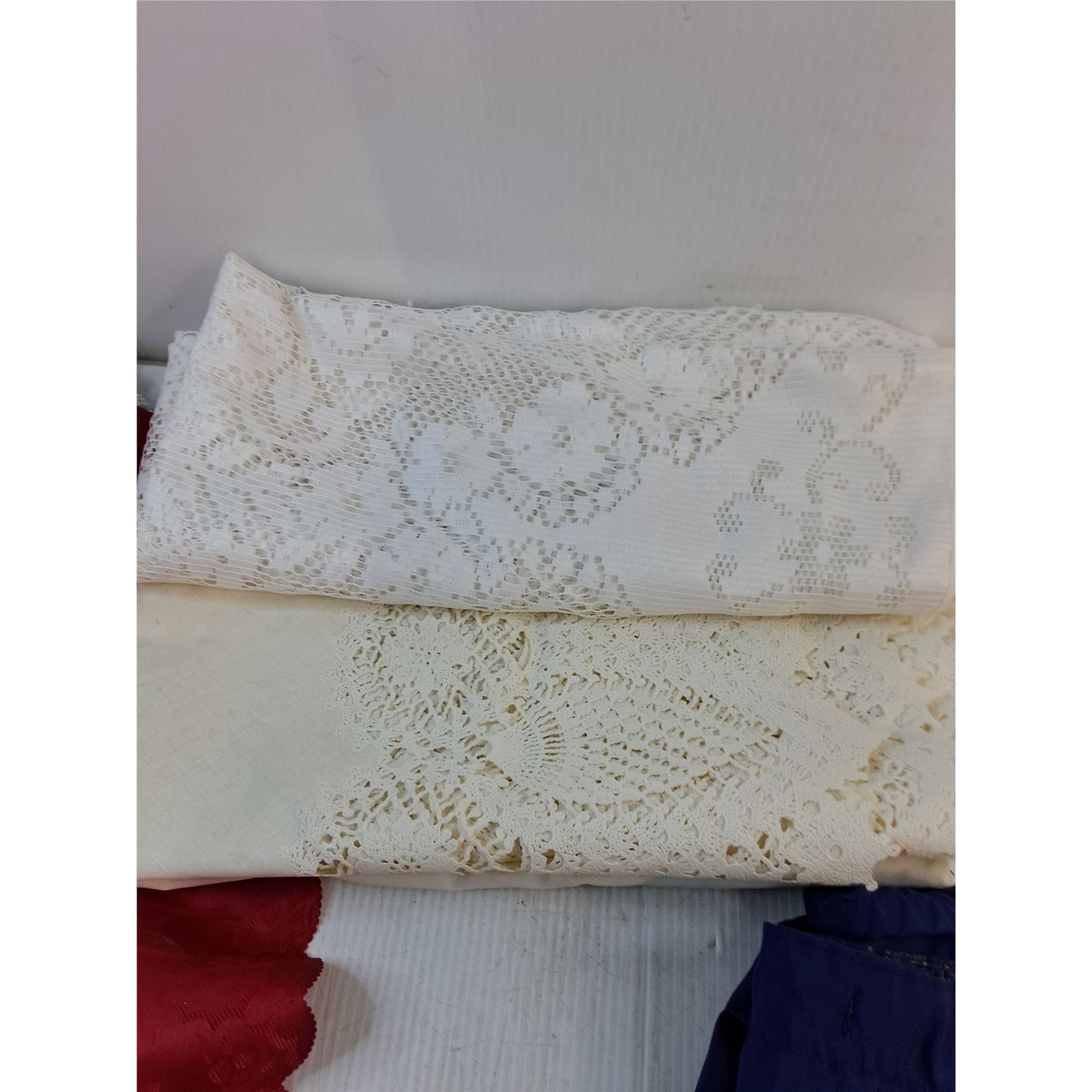 64" Shower Curtain, 18" Dry Mops, 48x64" Table Cloths, Curtains - As is, Table Runner