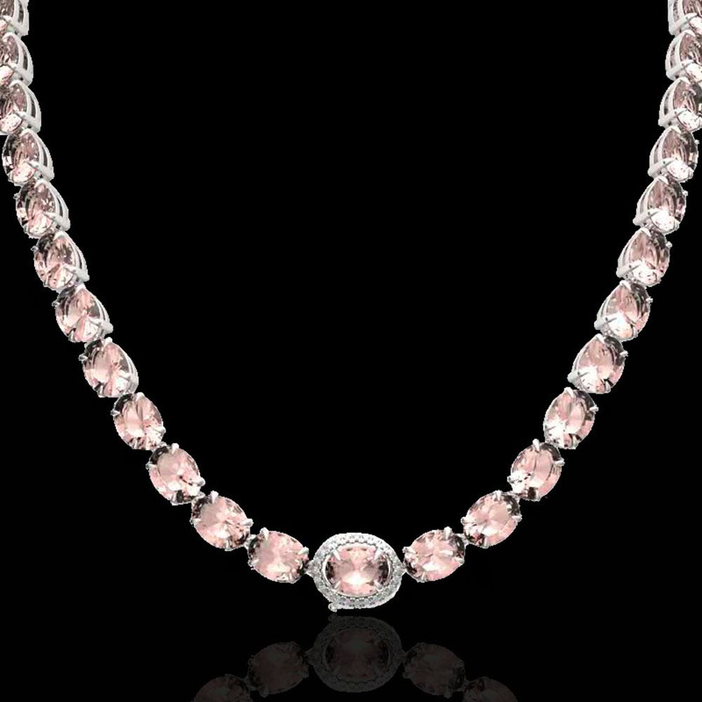 REF-637X3A - SKU: 23468 ---- 64 ctw Morganite & VS/SI Diamond Micro Necklace 14k White Gold