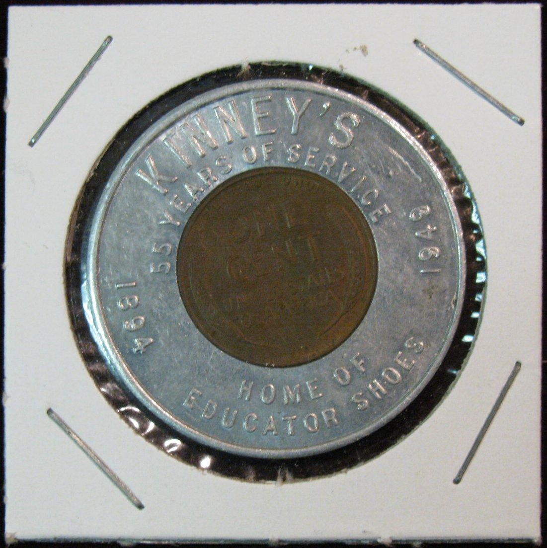 640. 1894 1949 Kinney's 55 Years of Service Home of Educator Shoes Encased Cent. 1948 S Lincoln Cent.