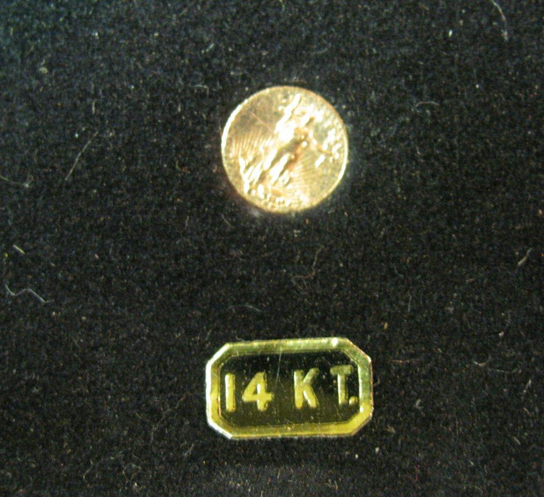 647. 14K Gold Miniature St. Gaudens Coin in velvet-lined case.