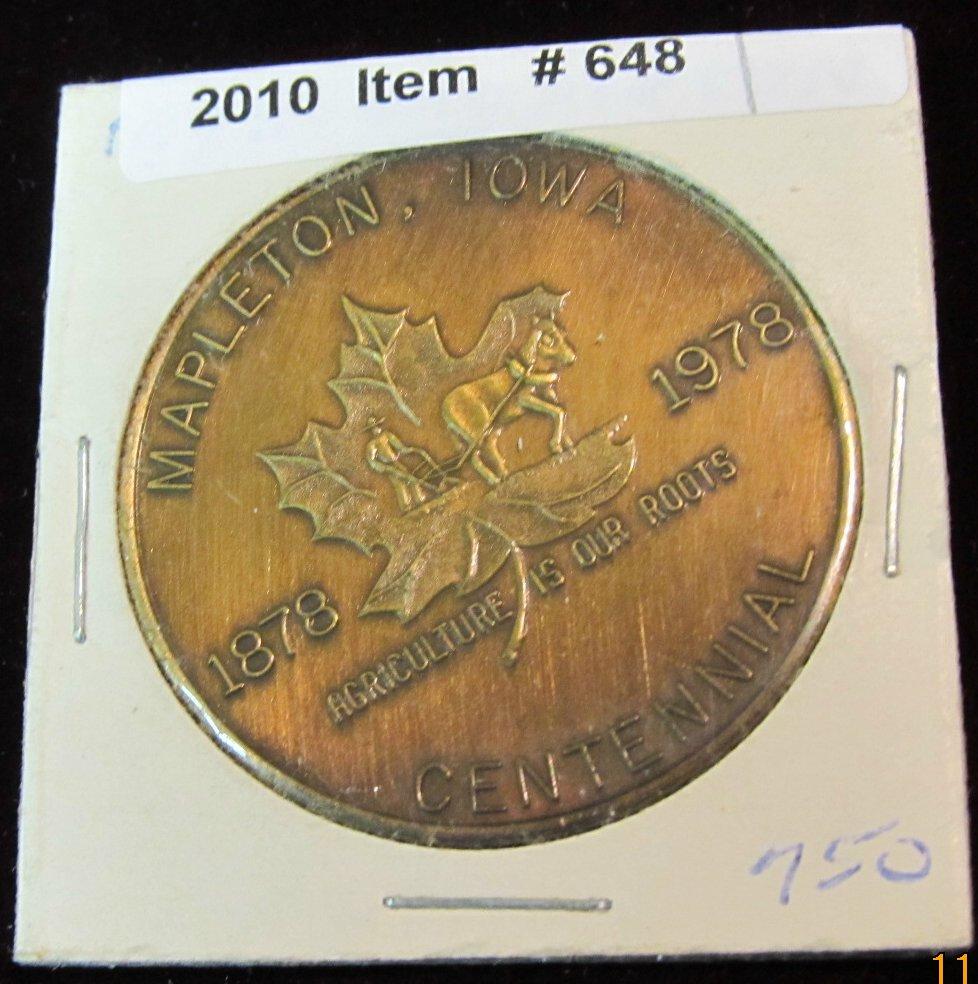 648. 1878-1978 Mapleton, Ia. Centennial Medal. 39mm
