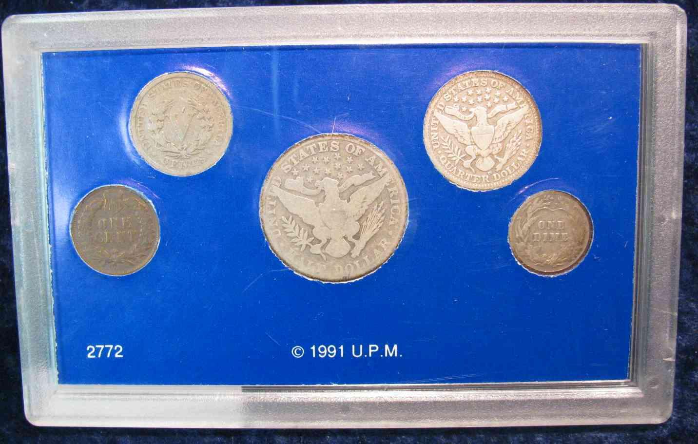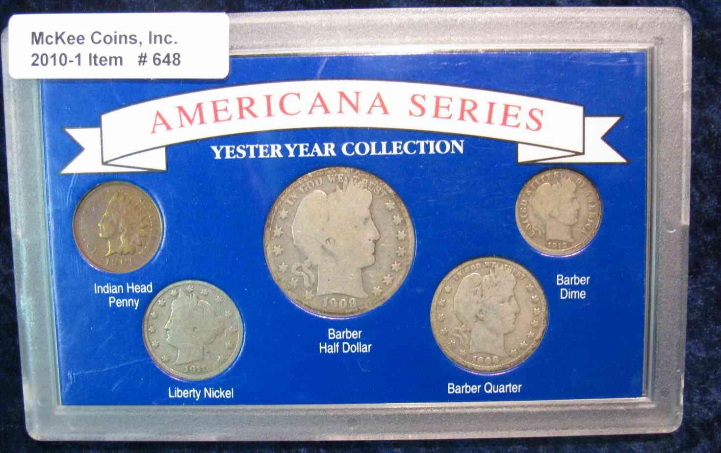 648. 1901-12 "Americana Series Yesteryear Collection" Cent through Half. Includes 1901 Indian Cent, 1911 Liberty Nickel, 1912P Barber Dime; 1908D Barber Quarter, & 1909P Barber Half Dollar. All in a special case.