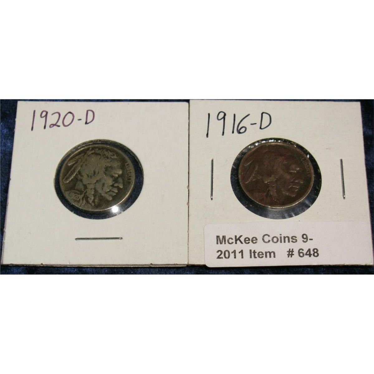 648. 1916 D & 20 D Buffalo Nickels. First is dark, second VG.