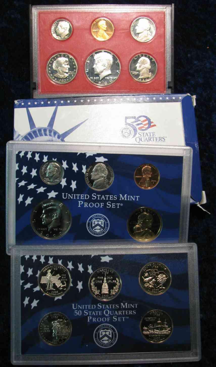 649. 1980 S & 2000 S U.S. Proof Sets. The first is missing the lid for the case.