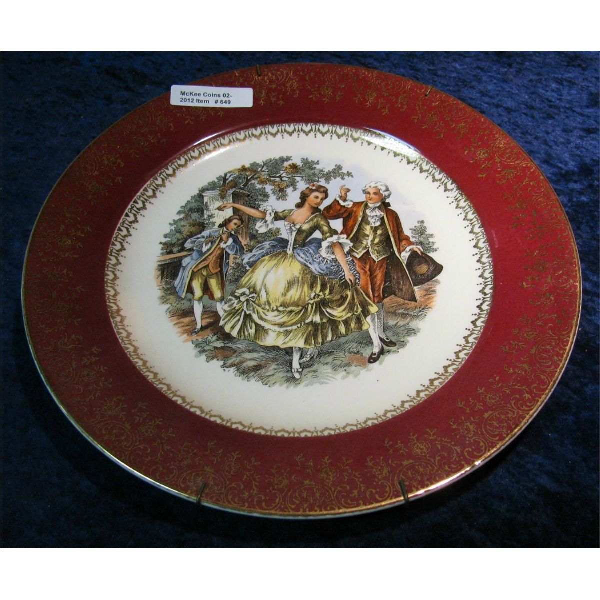 649. 23K Gold highlighted Collector's Plate with Colonial Trio. Pair dancing and one playing fife.