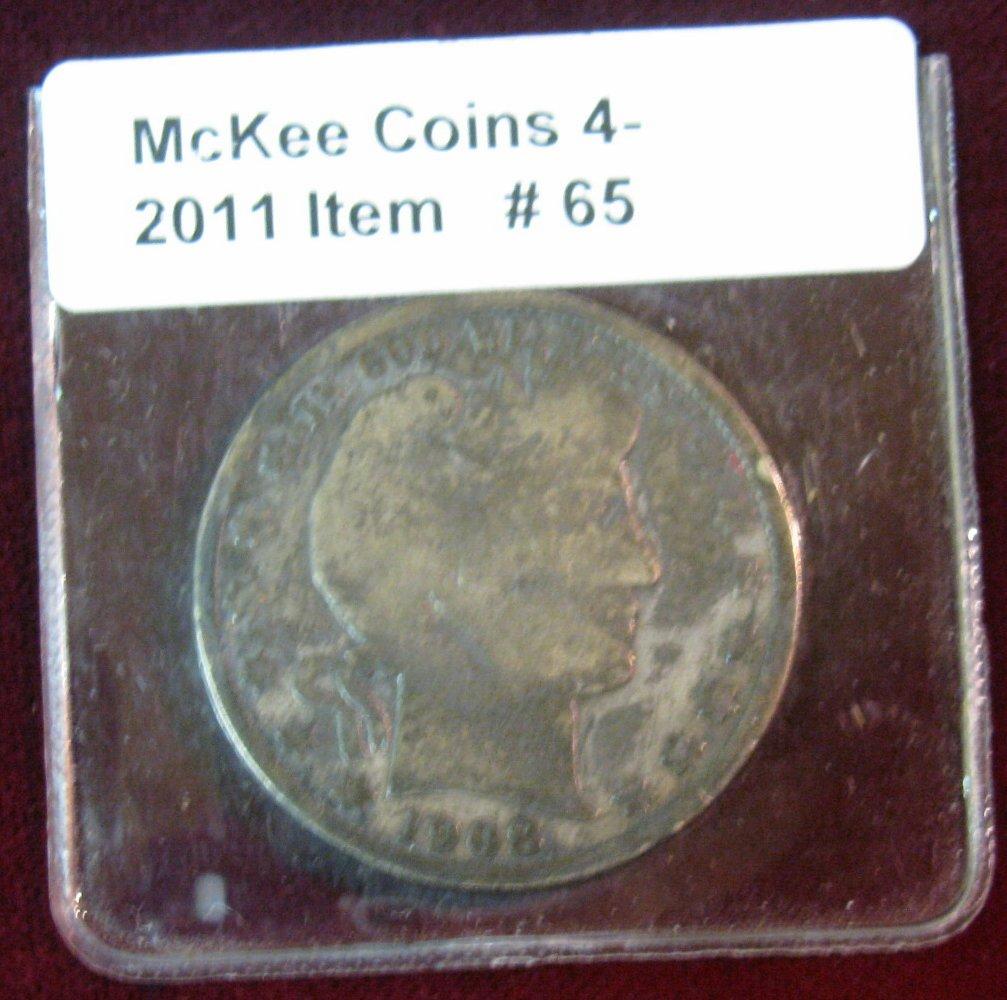 65. 1908 New Orleans Mint Barber Half Dollar. G-4.