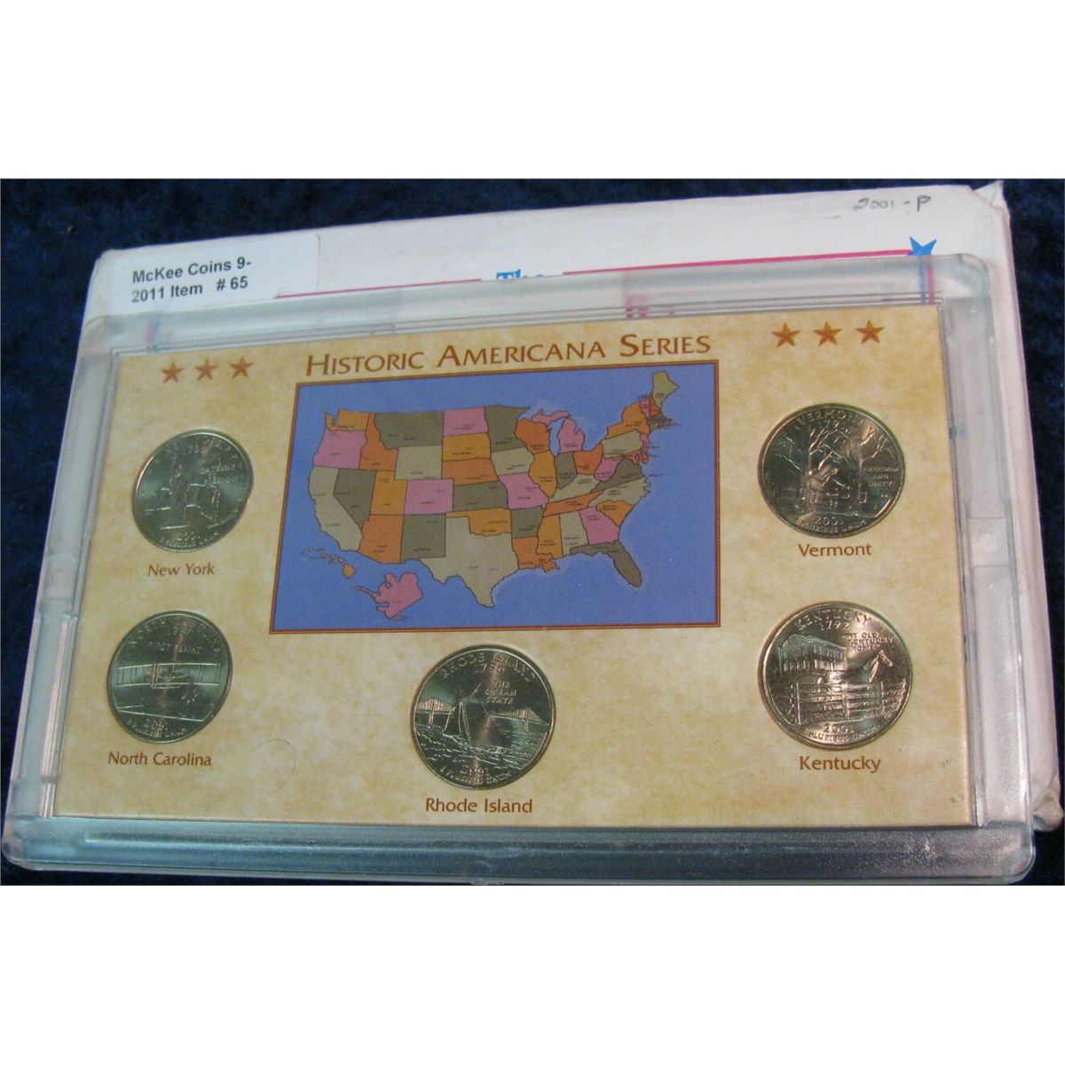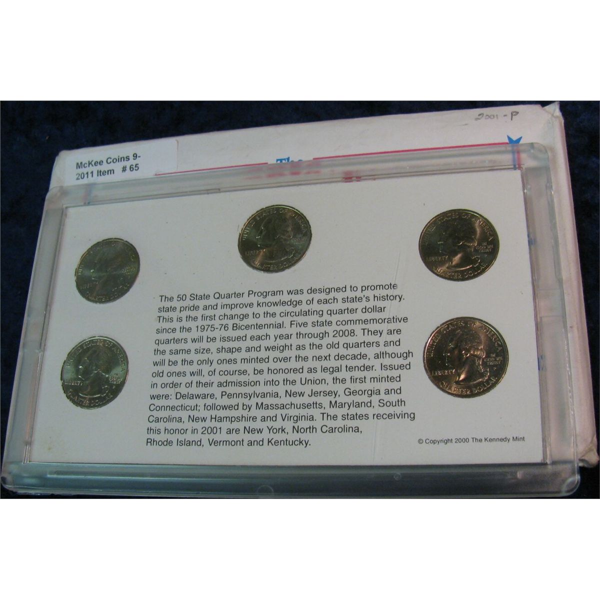 65. 2001 P Statehood Quarter Collection in hard plastic Kennedy Mint case. BU. Five-piece.