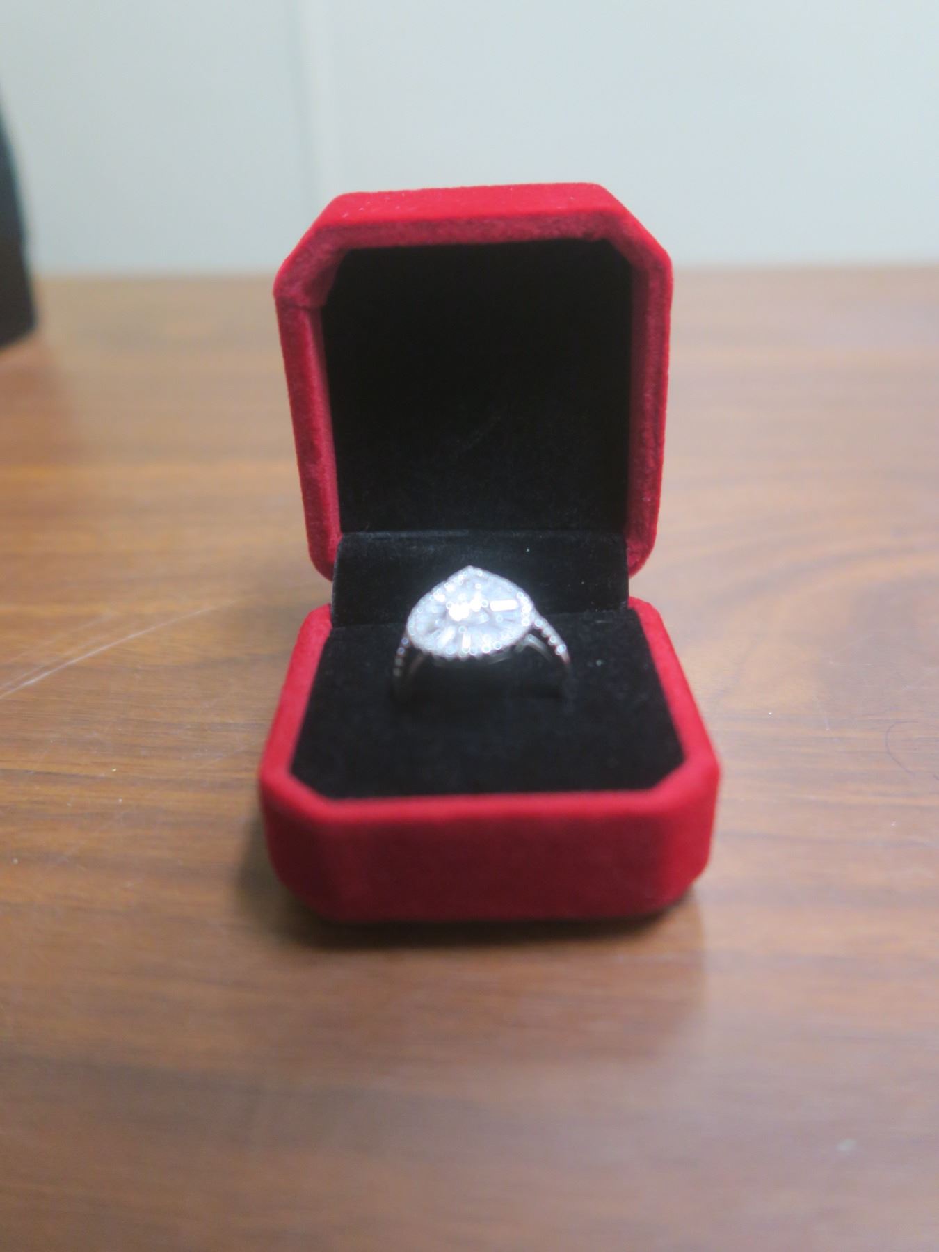 65 CT GRA CERTIFIED. Size 8-8.5 - MOISSANITE VVS D PEAR CUT WITH 0.20 CT PRINCESS CUT WITH 16 CZ’S THAT ARE TAPERED BAGUETTES WEIGHING 0.80 CT TW WITH 38 CUBIC ZIRCONIUM SET IN HALO AND DOWN SHANK WEIGHING 0.15 CT TW SET IN 925 SILVER RETAIL VALUE $1,030.00
