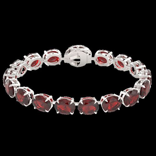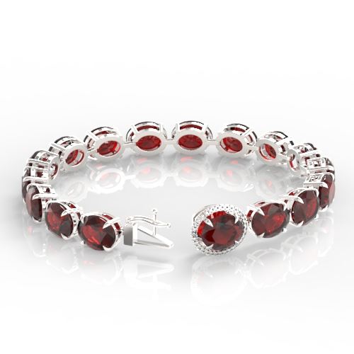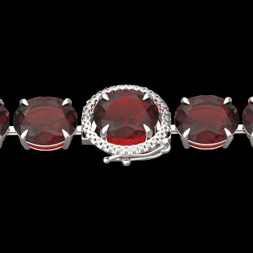 REF-233H3A -22260 ---- 65 CTW Garnet & Micro Pave VS/SI Diamond Halo Designer Bracelet 14K White Gold ---- Luxury Designer Brand Bracelet Appraised at $16,650 Certificate Number US22260 14k White gold, Bracelet Size is 7 1/2 Inches, Bracelet measuring approx. 8 mm x 7 1/2 inches, weighing in total approx. 20 grams. Made in the USA and is stamped 14k, Main stone 64.75 carat total weight containing 20 pieces of Saturated purplish Red color with AAA quality Oval shape cut Garnet , Stone #2 0.25 carat total weight containing 32 pieces of H-I color with VS/SI quality Round shape cut Diamond