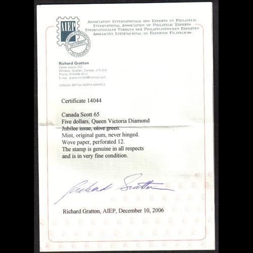 #65 MINT NH JUBILEE AIEP CERTFICATION C$6000,00