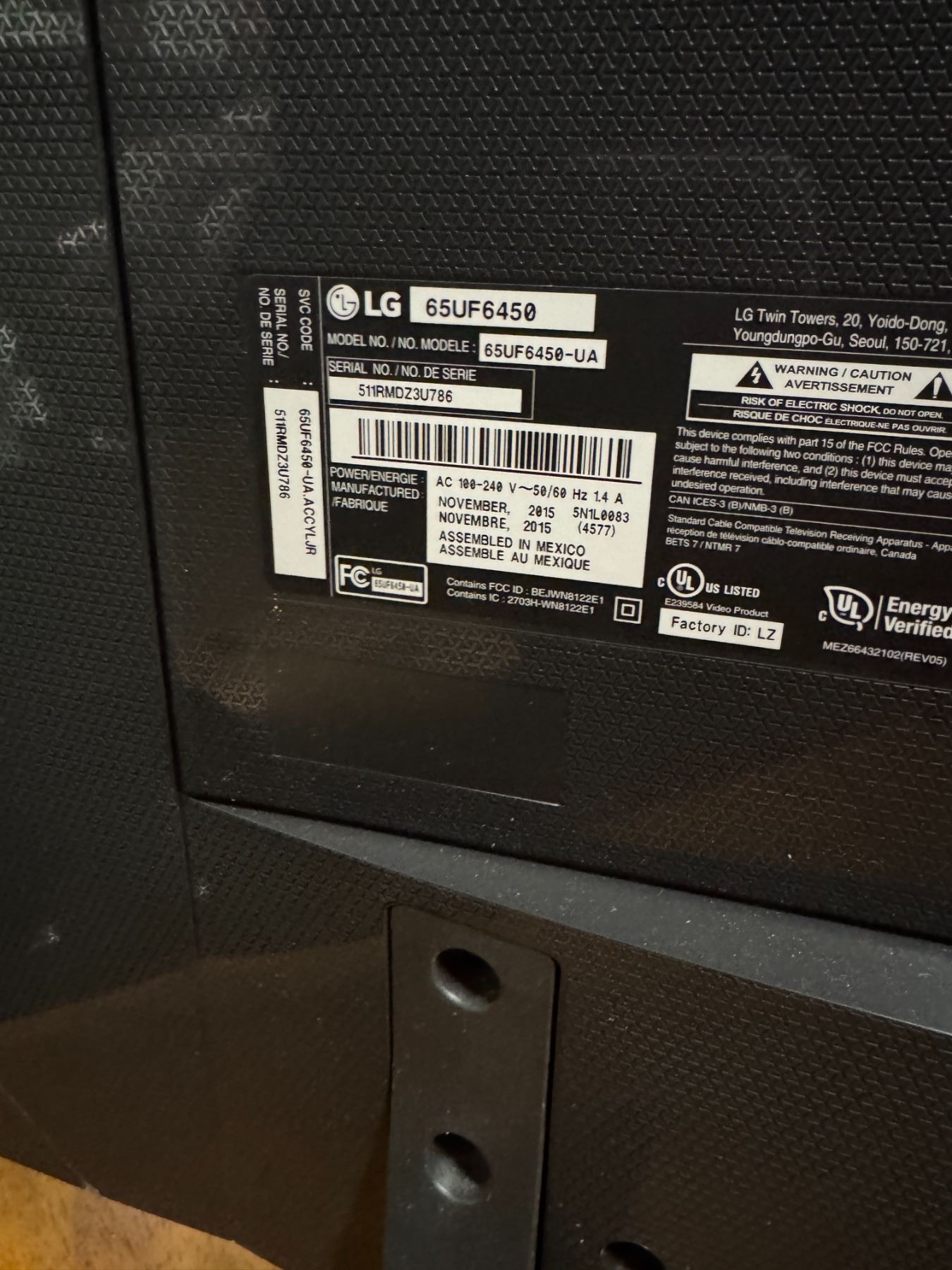 65 inch LG TV