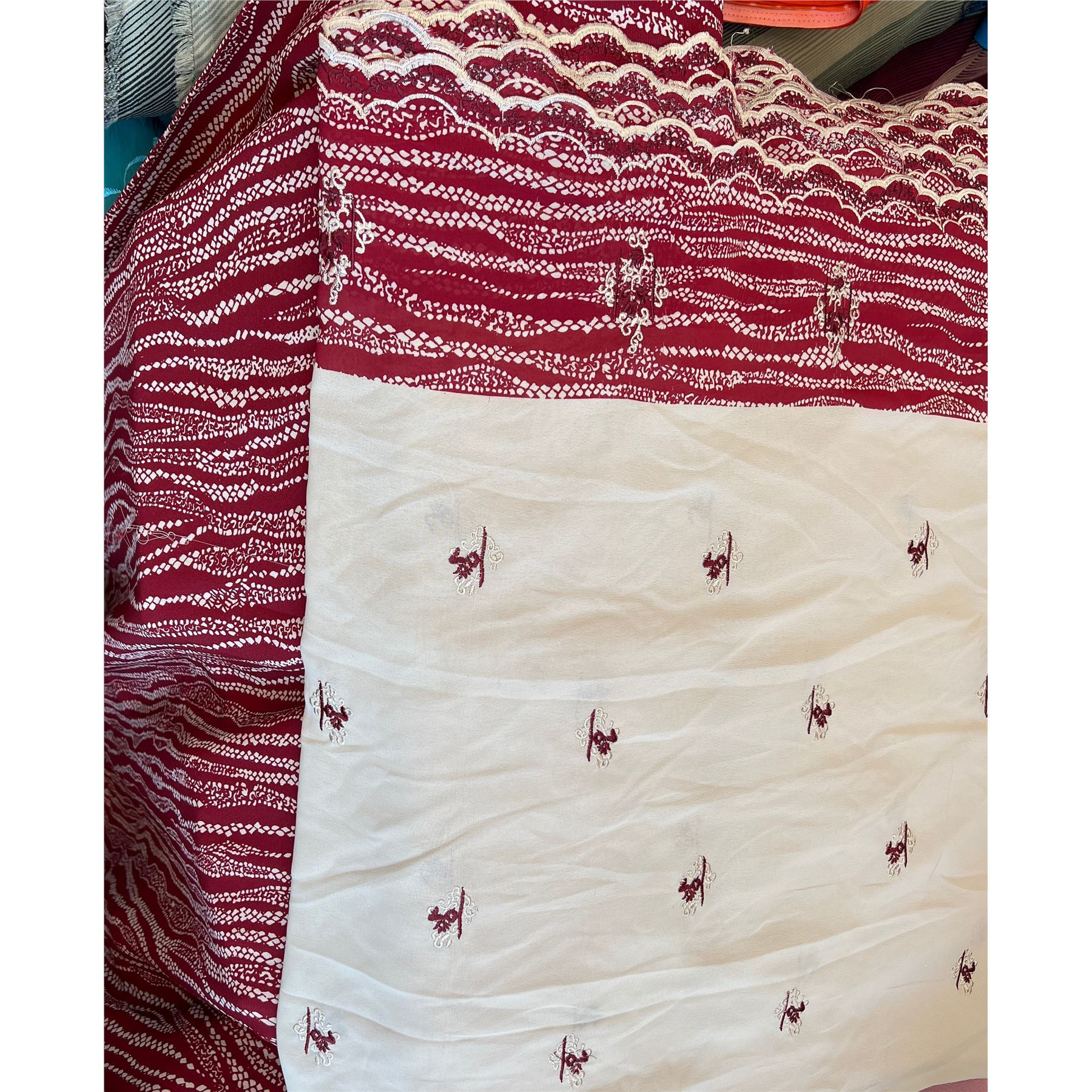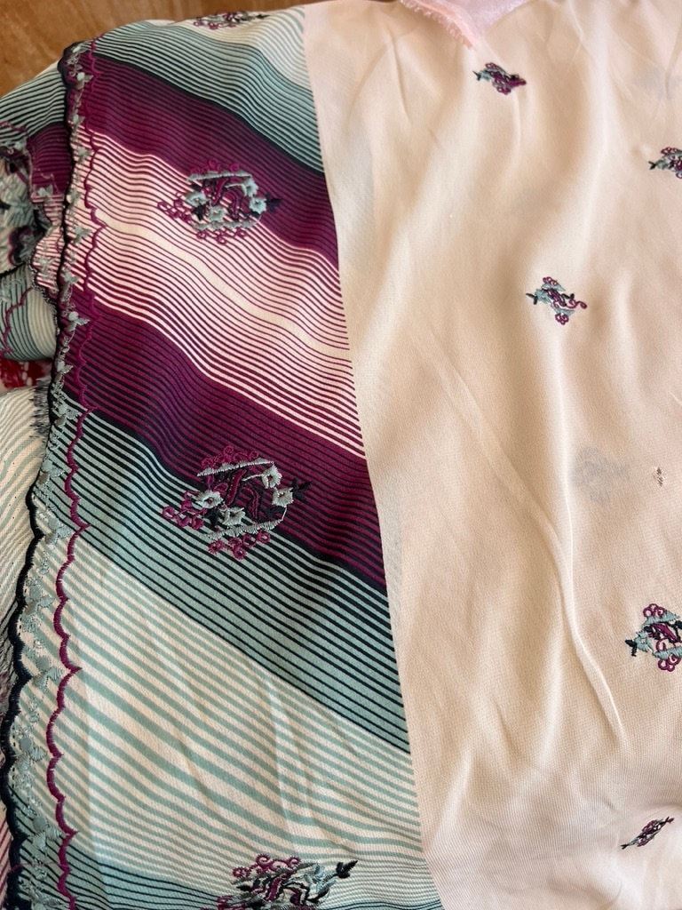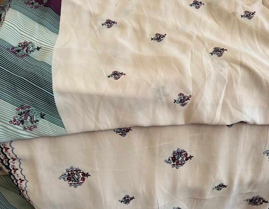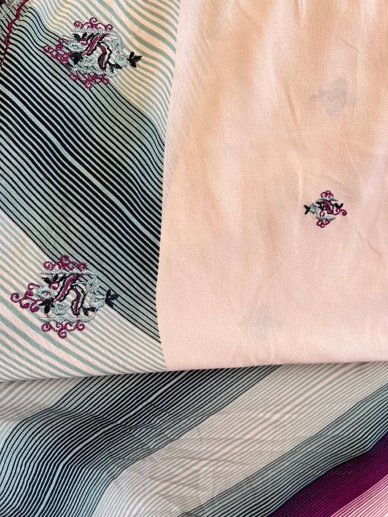 Heavy crepe & Chiffon embroidered material with geometric pattern matching material (60"w) BULK CLEARANCE SALE