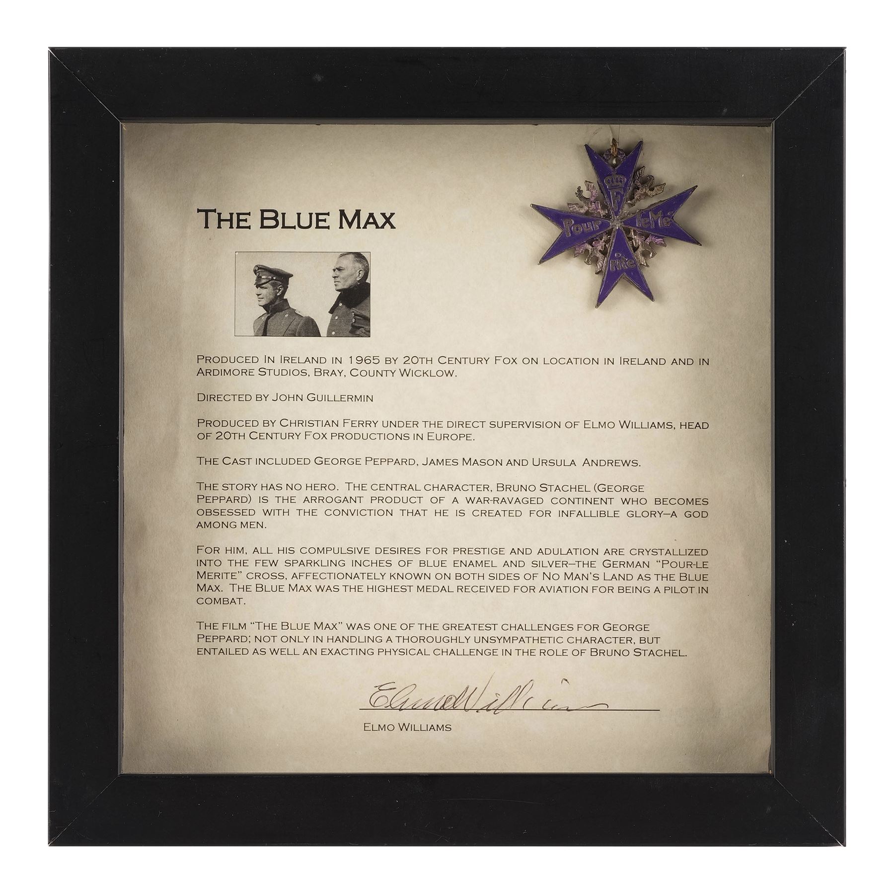 THE BLUE MAX (1966) - Framed Blue Max Medal - A framed Blue Max medal from John Guillermin's The Blue Max. Arrogant German pilot Bruno Stachel (George Peppard) spent World War I seeking The Blue Max, the highest honor given for extraordinary valor.
