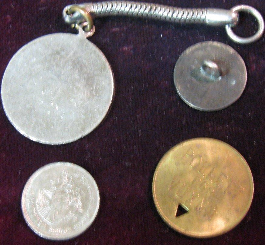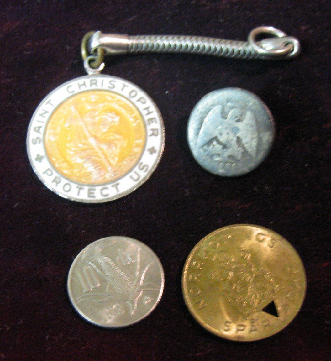 652. St. Christopher on Key ring; 1886 Mexico Silver 5 Centavos Button; token, & Mexico Coin.