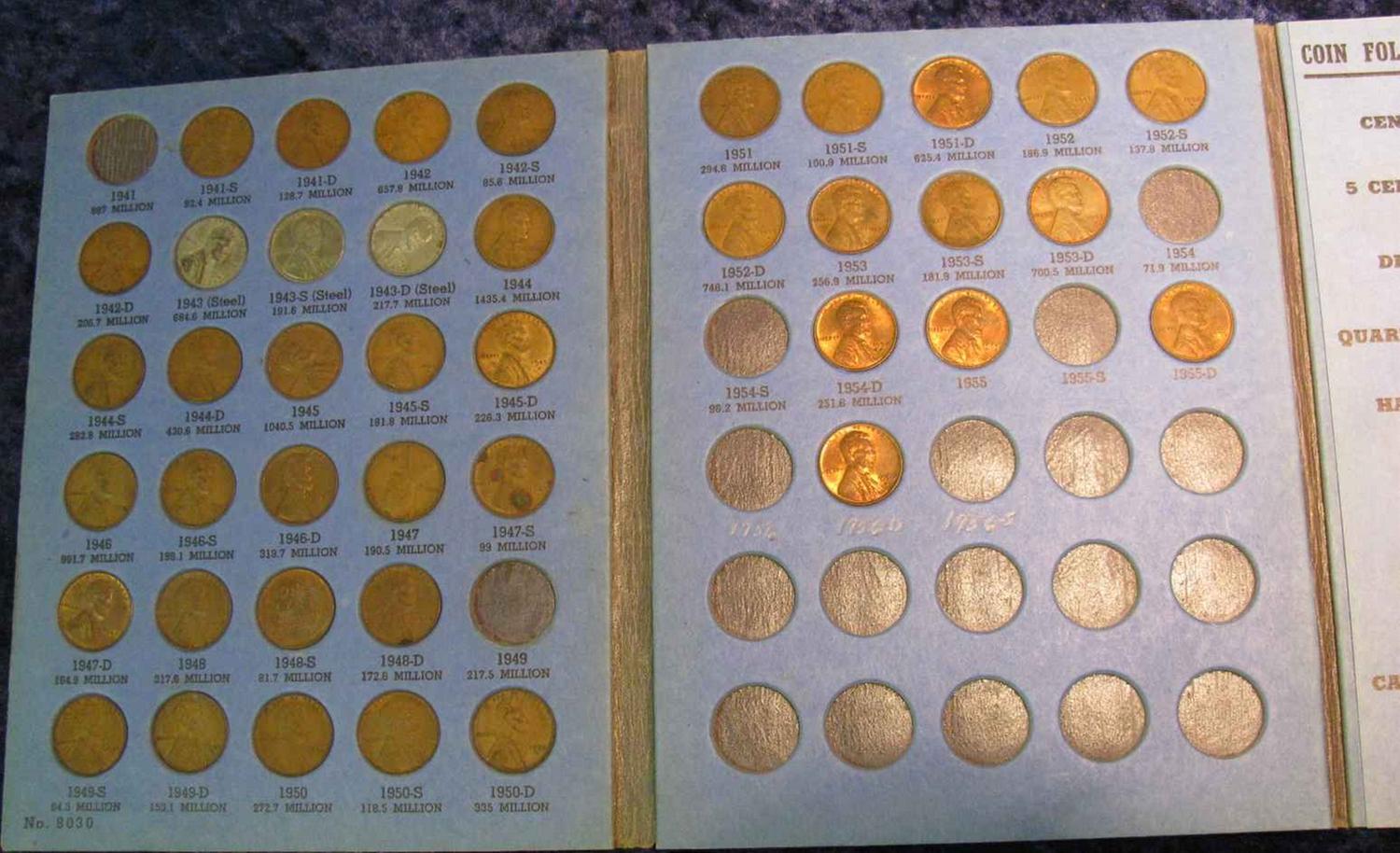 654. Partial Set of 1941-56 Lincoln Cents in a Whitman folder.