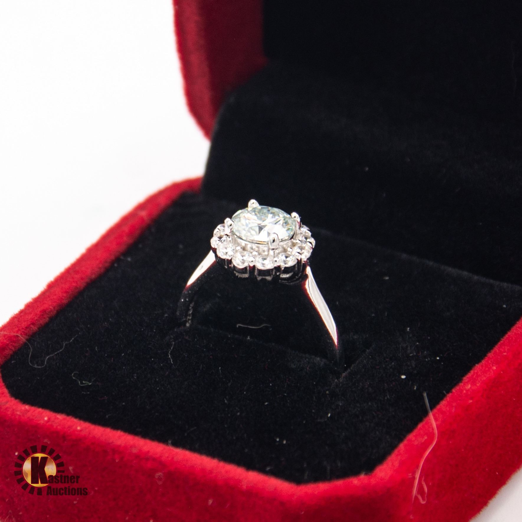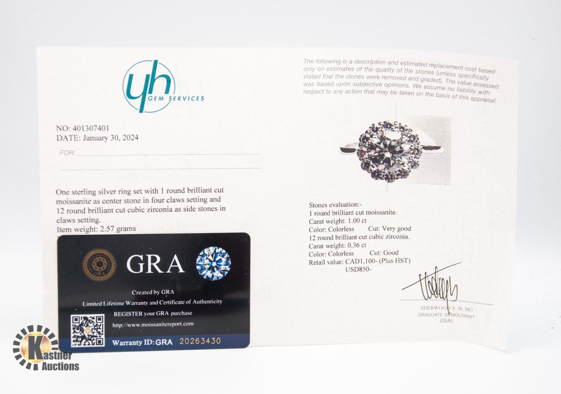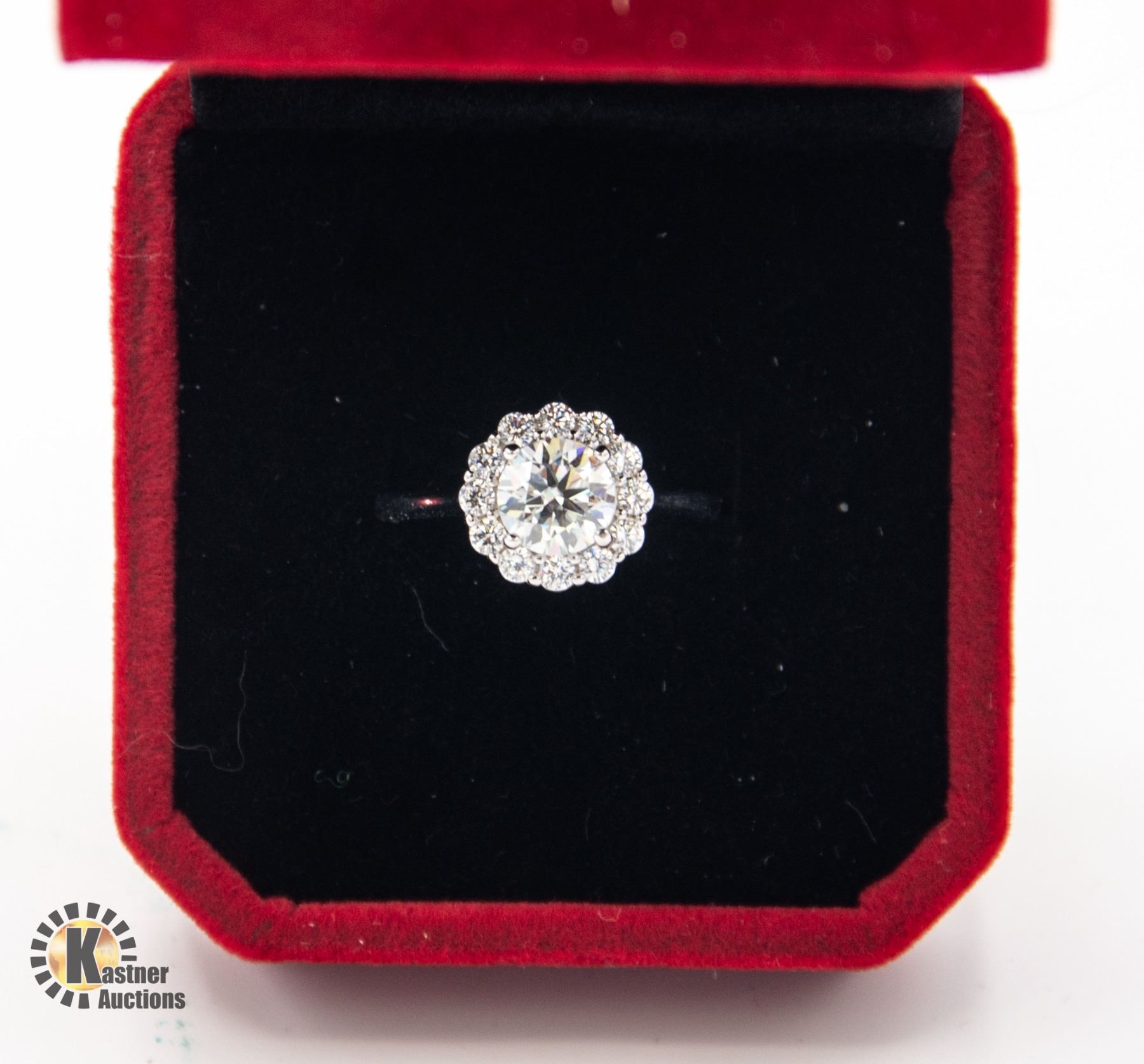 MOISSANITE STONE VVS D COLOR SET CENTER IN 925 SILVER RING SIZE ADJUSTABLE RETAIL VALUE $1,100.00 **ALL ITEMS MUST BE REMOVED BY 5PM SATURDAY, SEPTEMBER 28TH 2024. ALL REMAINING ITEMS WILL BE SUBJECT TO A $6.00 PER DAY STORAGE CHARGE. ANY ITEMS REMAINING AFTER MONDAY, OCTOBER 14TH 2024 WILL BE CONSIDERED FORFEITED. NO REFUNDS WILL BE ISSUED FOR FORFEITED ITEMS. TO SCHEDULE A PICK UP APPOINTMENT CLICK HERE