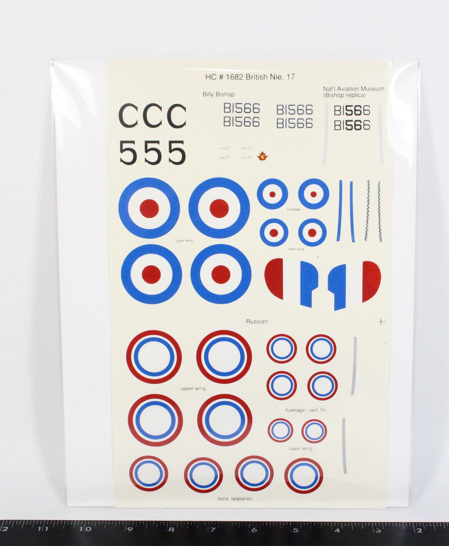 HC # 1682 BRITISH NIE. 17 PLANE DECALS NATIONAL AVIATION MUSEUM