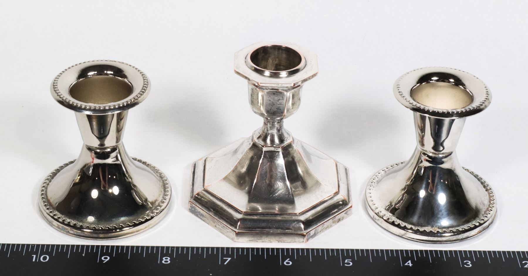 #657 ELECTRO PLATED SET OF 3 CANDLE HOLDERS