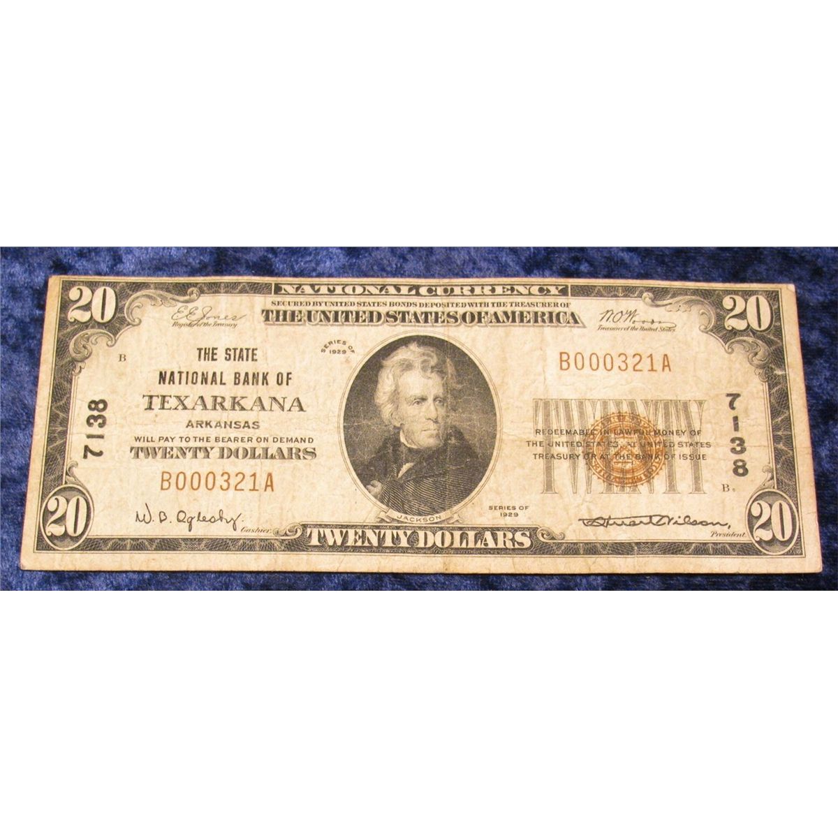 657. Series 1929 $20 "The State National Bank of Texarkana Arkansas" Type One. Charter No. 7138. VG.