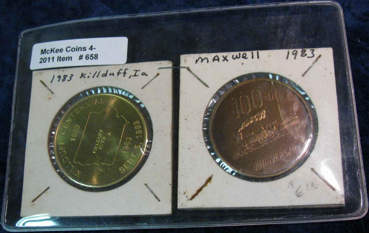 658. 1883-1983 Maxwell, Ia. & Killduff, Ia. Centennial Medals. Both brass.