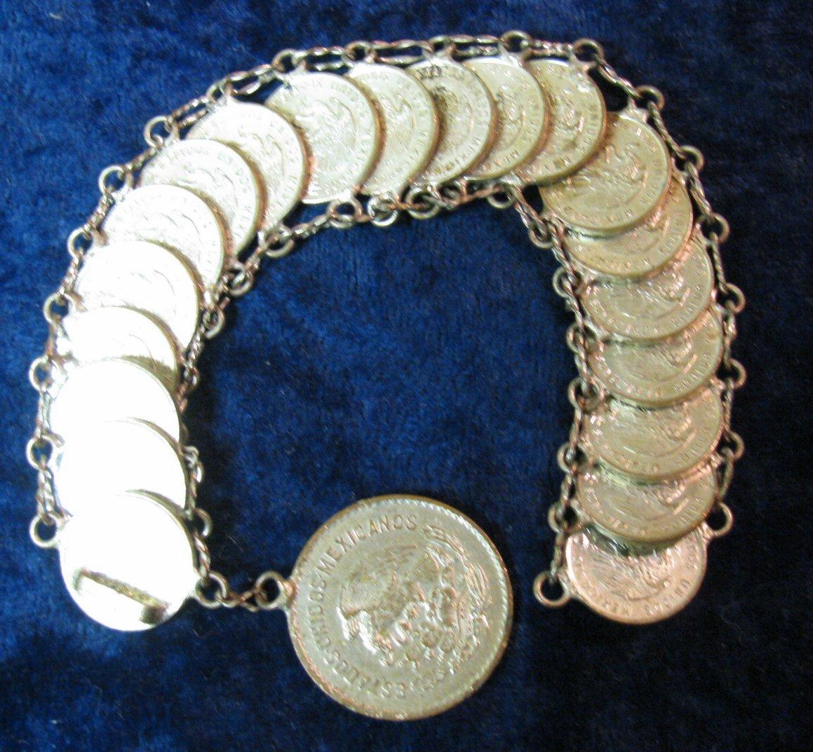 658. Ladies Bracelet made with Silver-plated Mexico Coins.