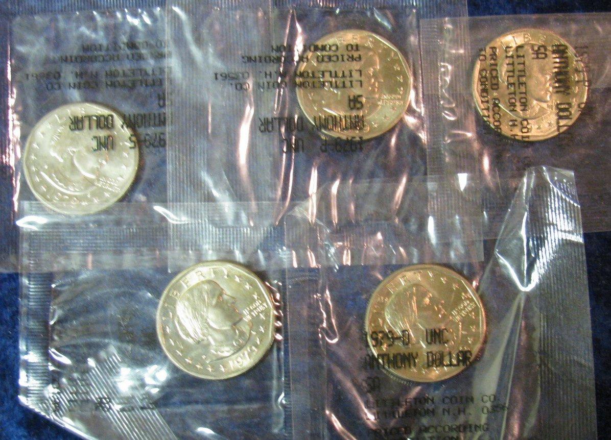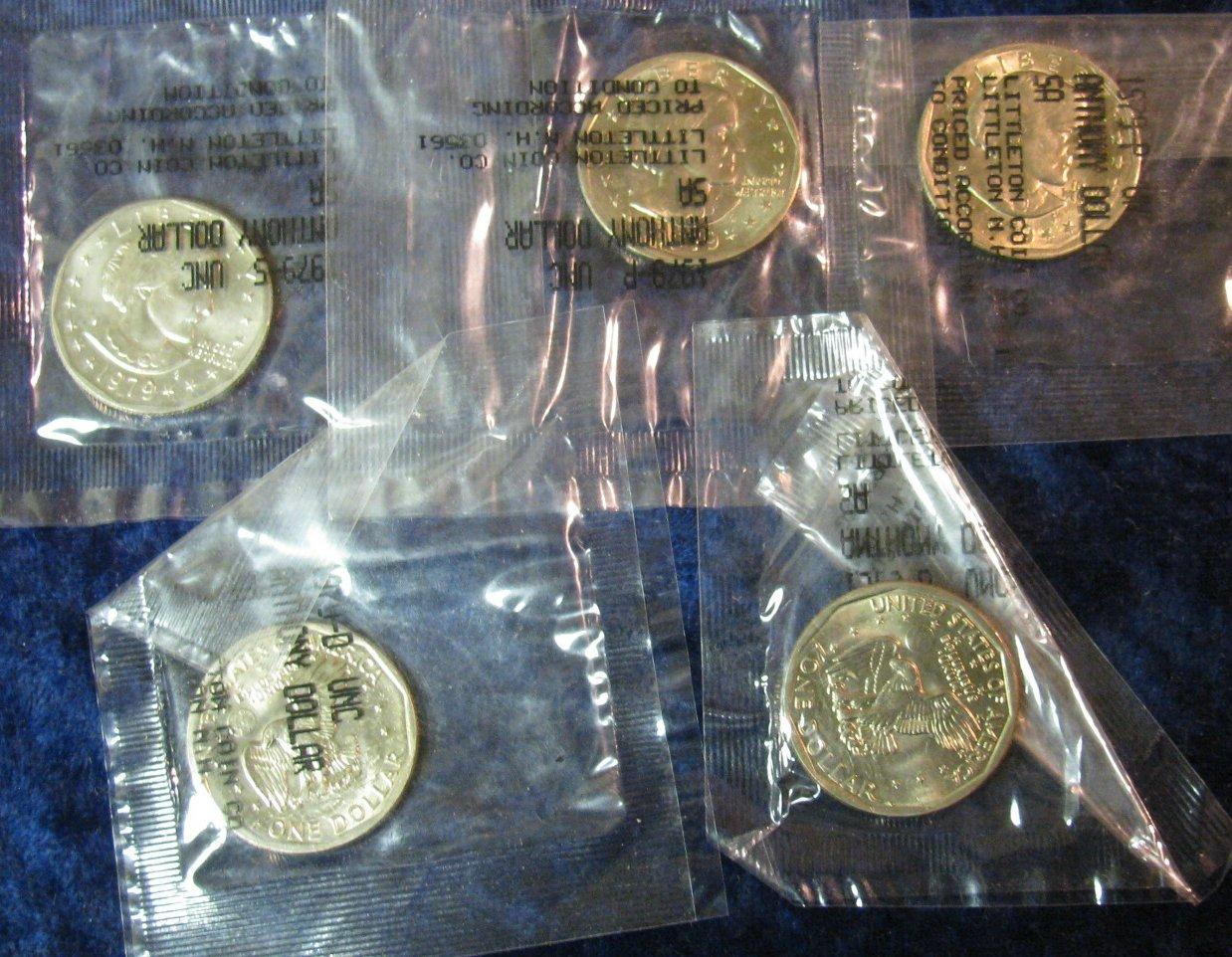 659. (5) Uncirculated 1979 P, D, & S Susan B. Anthony Dollars in Littleton Coin Company holders.
