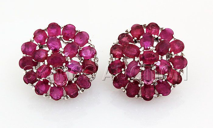 66.11CTW Flower Cluster Pink Ruby Silver Earring **|**|** Cluster of Oval Shape Pinkish Ruby Gemstone in Silver Earring w/ Clipon Back; Size: 6x4mm; ctw: 24.00; stone count: 40; gram weight: 8.42 ; MSRP: $2900