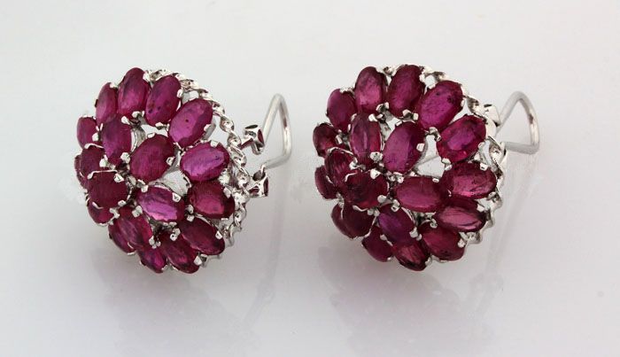 66.11CTW Flower Cluster Pink Ruby Silver Earring **|**|** Cluster of Oval Shape Pinkish Ruby Gemstone in Silver Earring w/ Clipon Back; Size: 6x4mm; ctw: 24.00; stone count: 40; gram weight: 8.42 ; MSRP: $1100